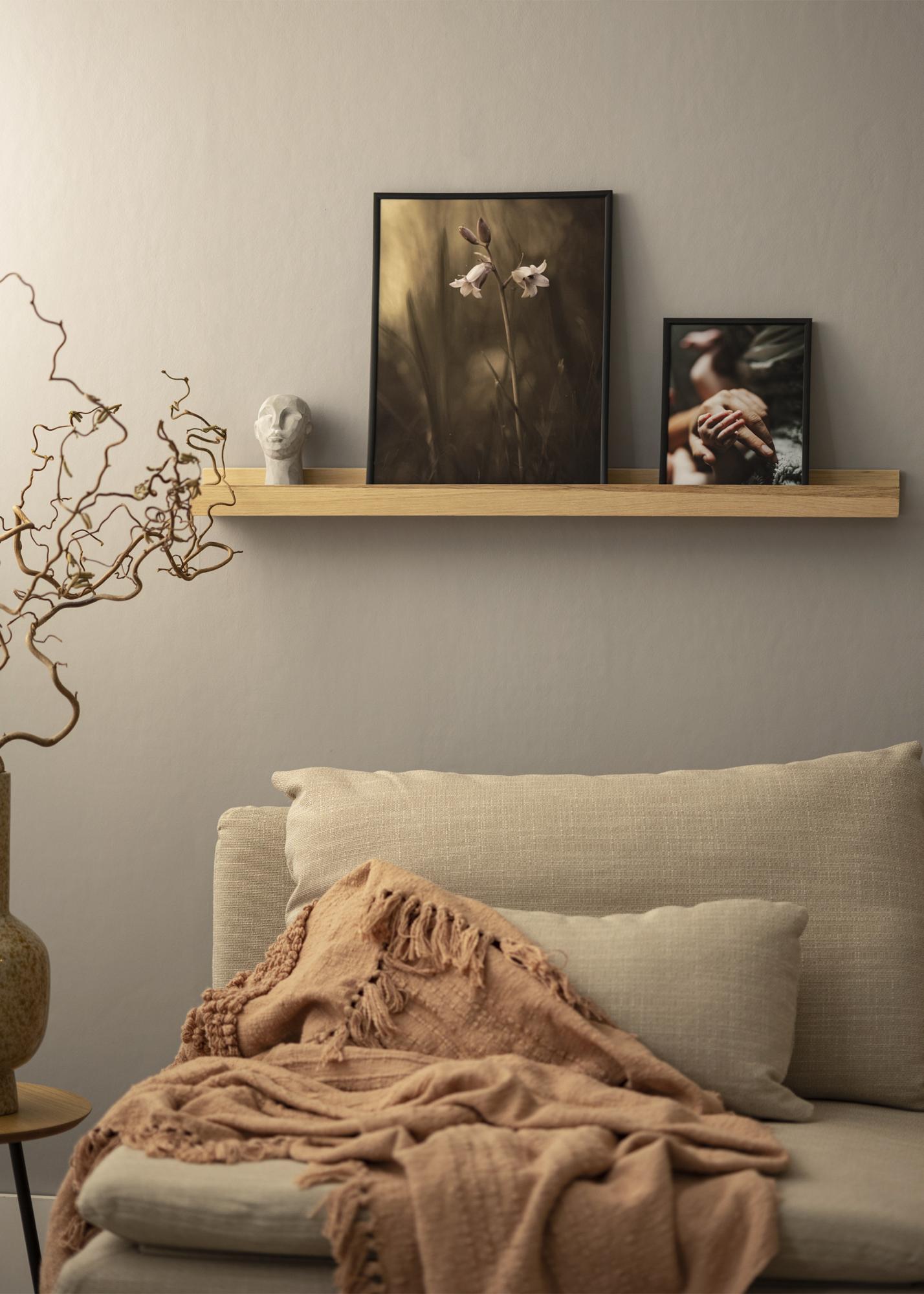 Notez que l'étagère pour cadre étant en chêne massif, des variations de couleur naturelles peuvent se produire. L'étagère porte-cadre est traitée avec une huile transparente protectrice.
