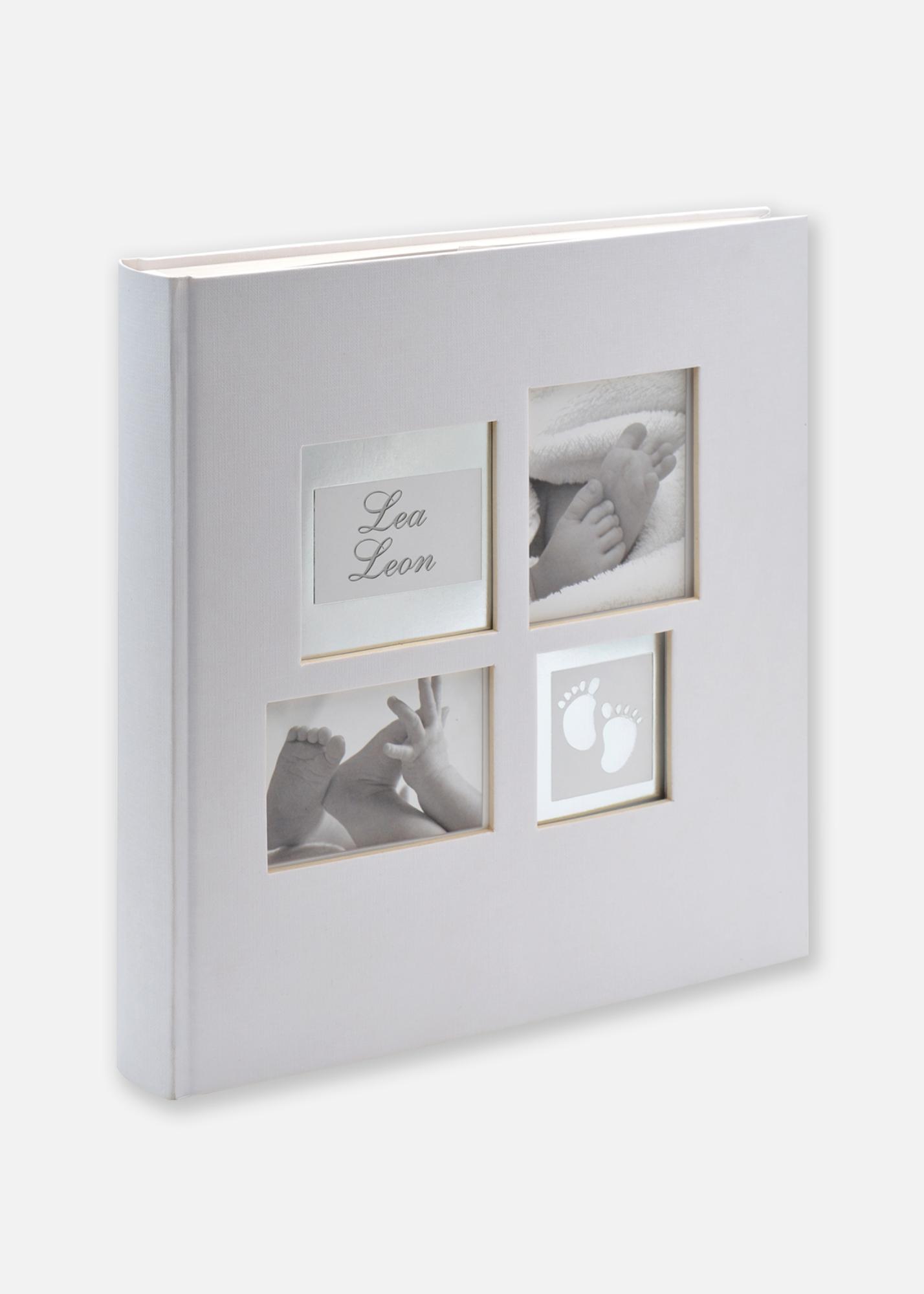 Un élégant album bébé en blanc avec un léger ton gris avec espace pour 4 images sur le devant de l'album. Parfait lorsque vous souhaitez créer votre propre album bébé personnalisé pour vos photos préférées.