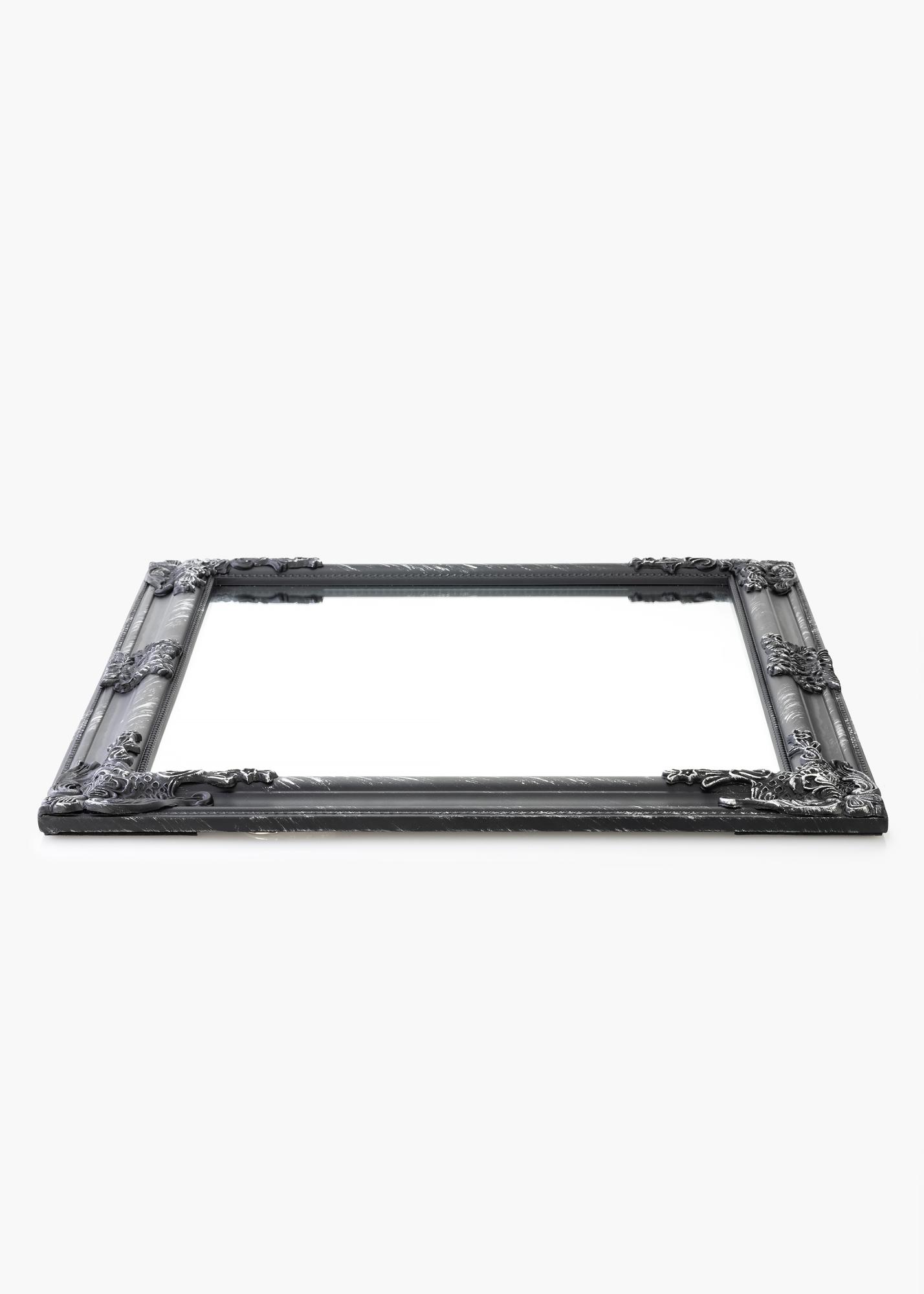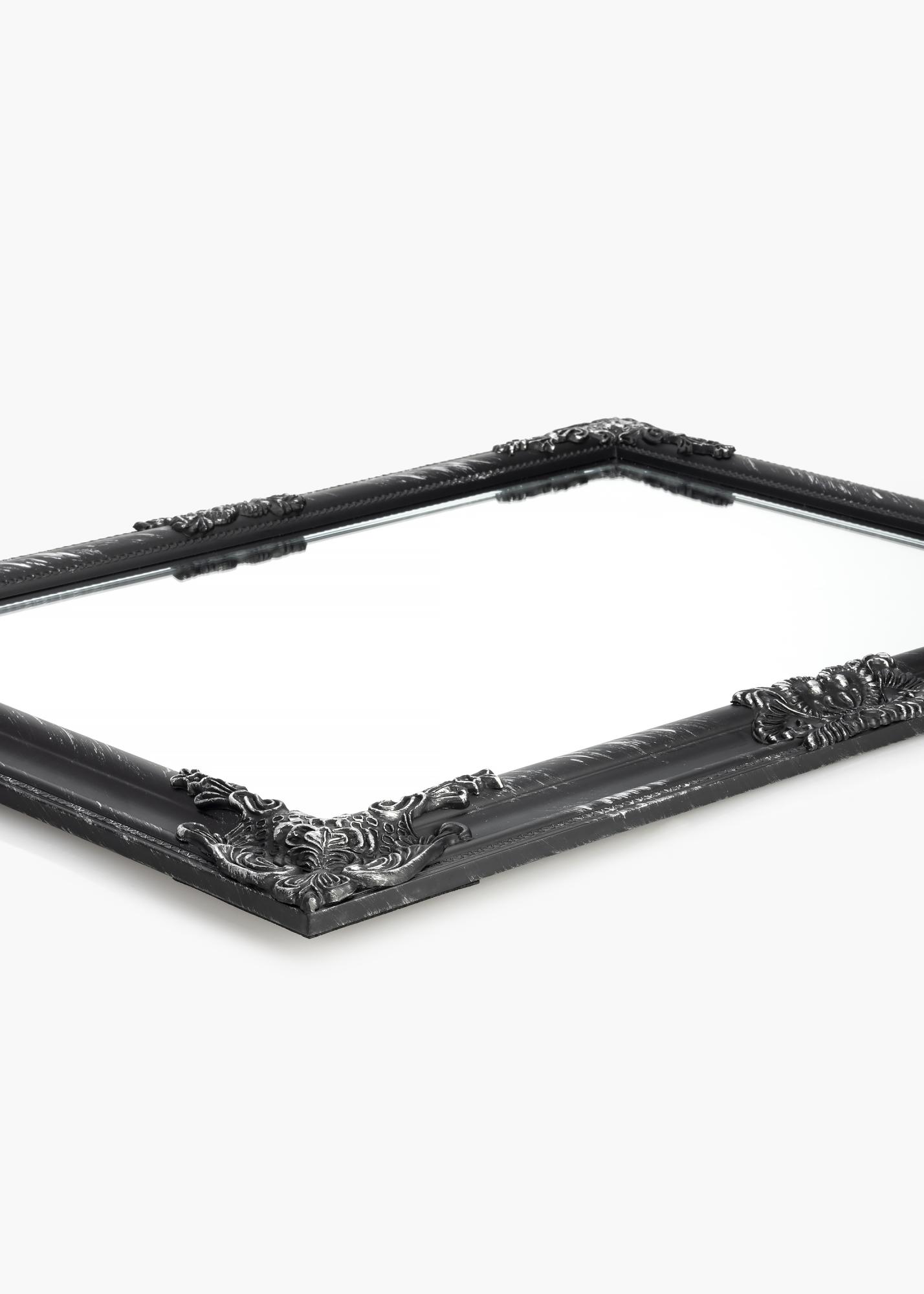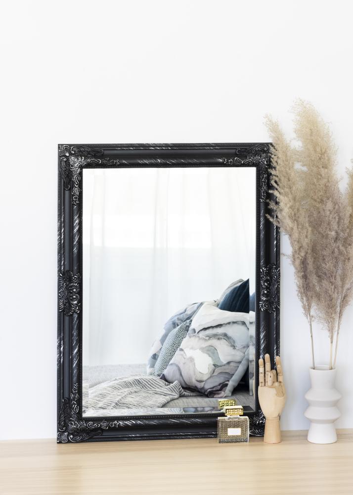 La série de miroirs Bologna Noir a un design latin paré d'une riche décoration dans les coins et au centre des côtés du cadre. Le cadre de ce miroir est légèrement plus étroit que celui de nombreux autres miroirs de ce style. Ce cadre est en bois et est orné d'une décoration qui a été coulée dans du plâtre avant d'être appliquée sur le cadre. Idéal comme miroir de salle de bain.