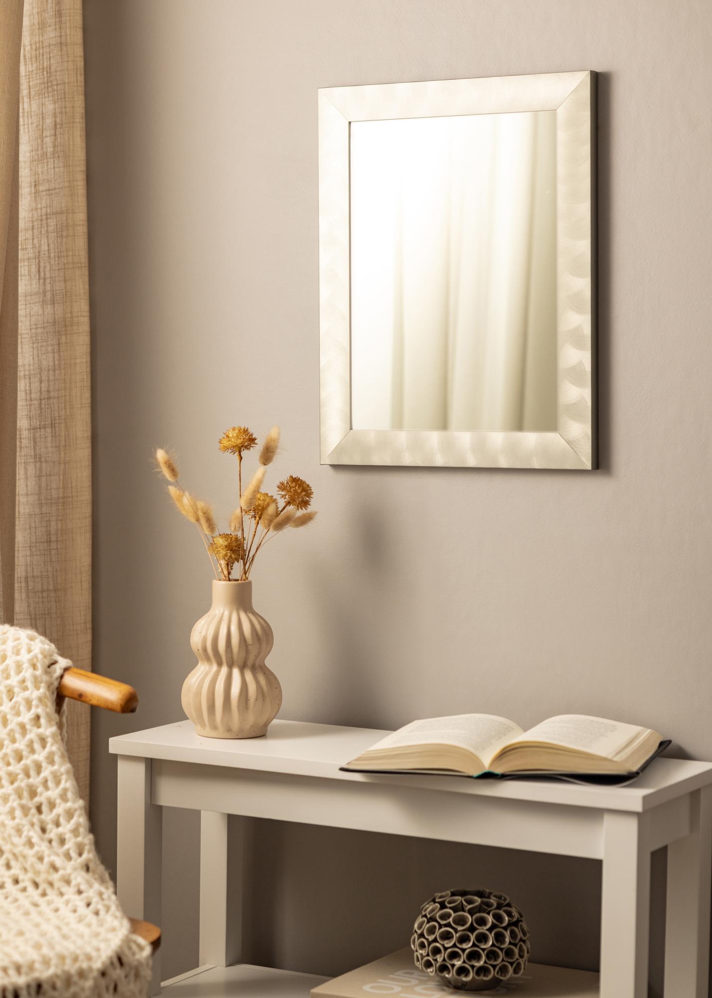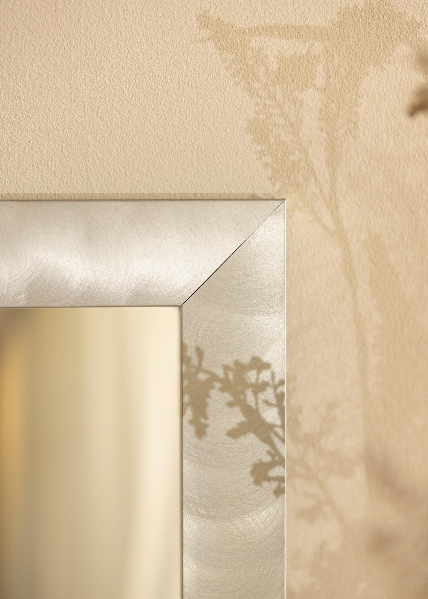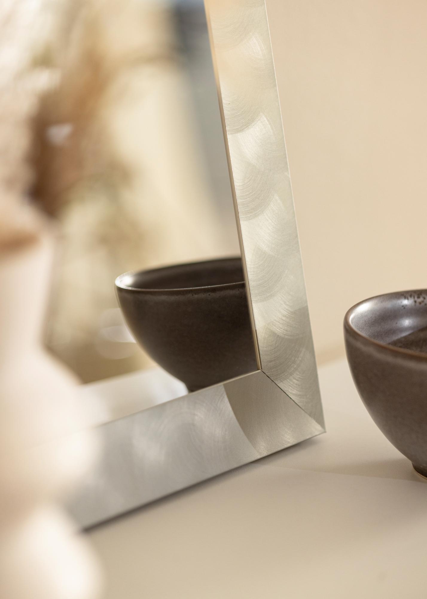 Miroir discret avec un cadre large et lisse fabriqué en Allemagne en aluminium de haute qualité. Le cadre a un léger aspect d'acier vivace et avec son design de style soigné, le miroir convient à la fois à la maison minimaliste comme à la maison rurale et s'intègre dans tous les types de pièces. Accrochez le miroir dans une pièce avec des tableaux qui ont des cadres de couleur argent ou noir et combinez-les avec des accessoires d'intérieurs dans une palette de gris pour créer un ensemble dans votre intérieur.
