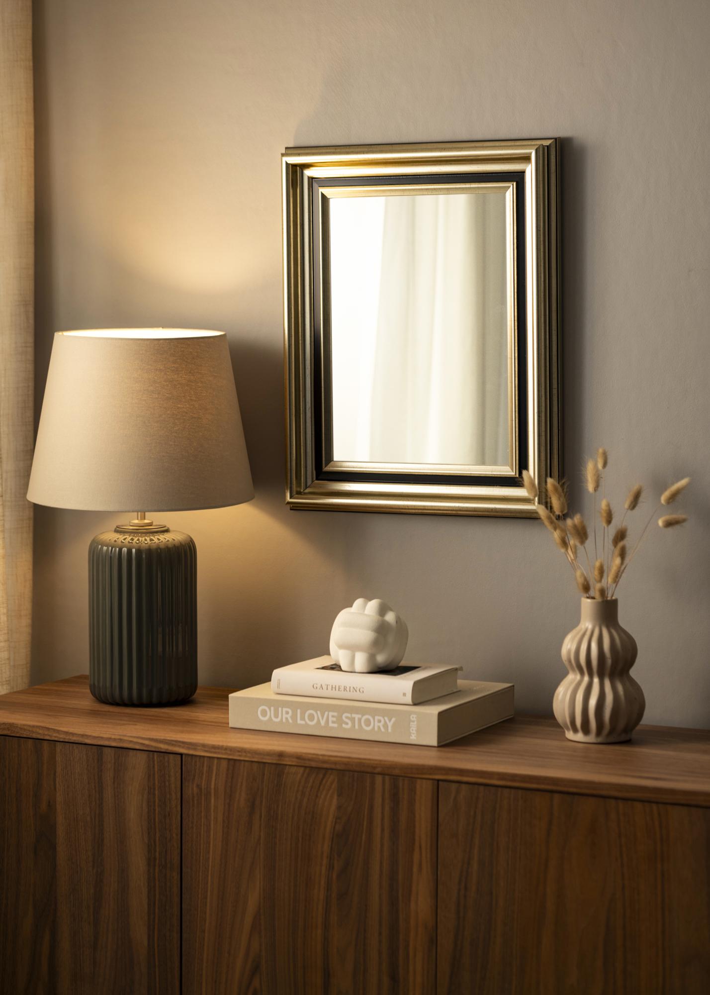 Si vous désirez embellir le mur avec un beau miroir doré, nous avons de nombreuses options parmi lesquelles choisir ! Cette conception-là est dotée d'un cadre classique avec un doux ruban de perles au plus proche du verre. La couleur dorée est interrompue par de petits décalages de couleur qui lui apportent du caractère.
