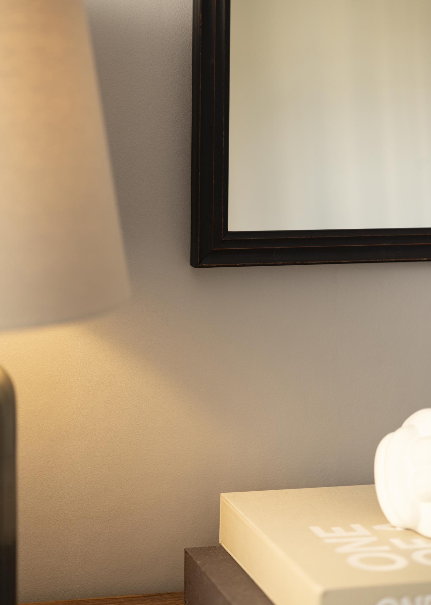 Lorsque vous recherchez un miroir coûteux de style rétro avec un profil noir et de belles lignes dorées, "Heby Svart" est un choix évident. En choisissant vous-même la taille, vous pouvez obtenir exactement la dimension que vous recherchez pour votre nouveau beau miroir.