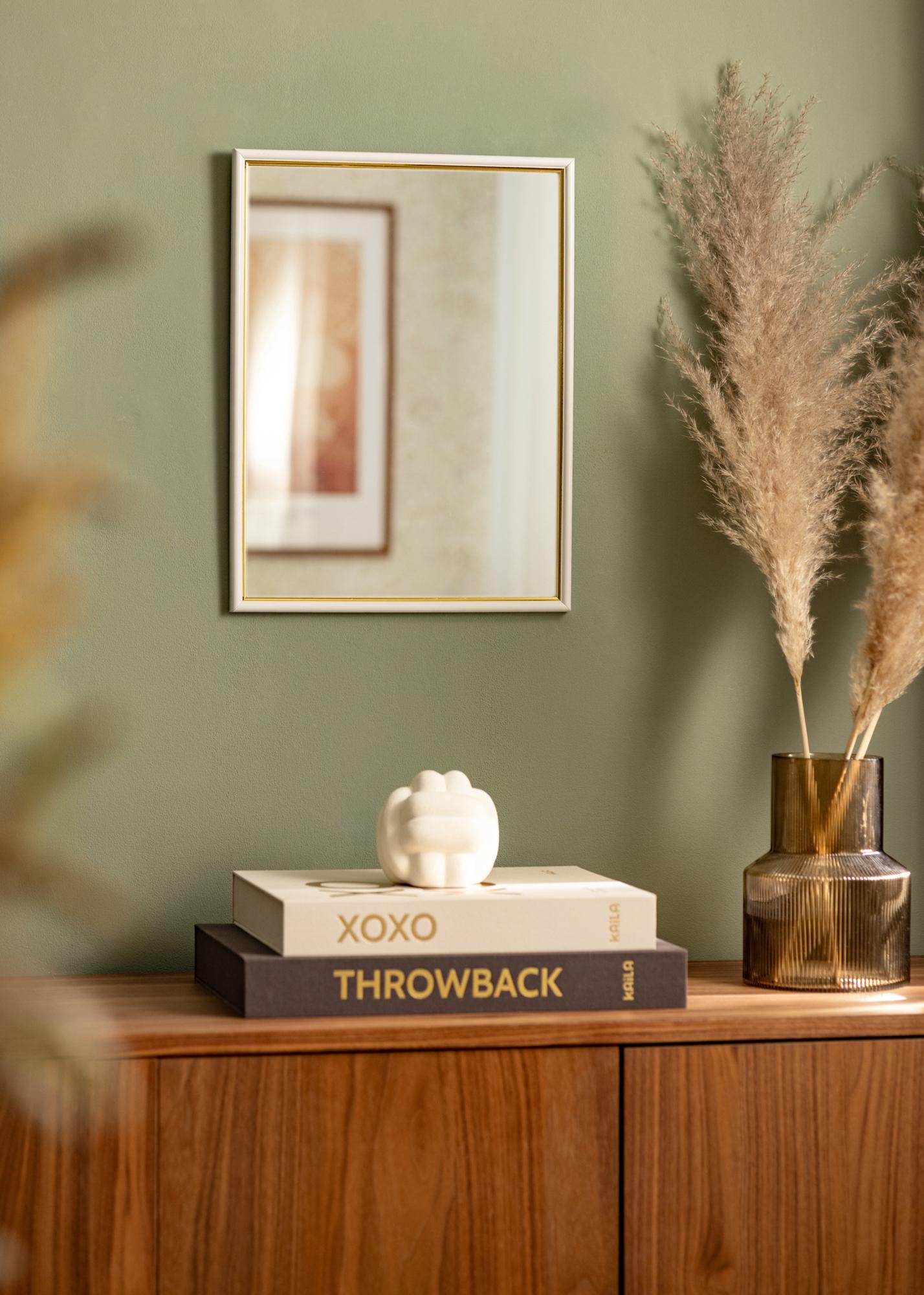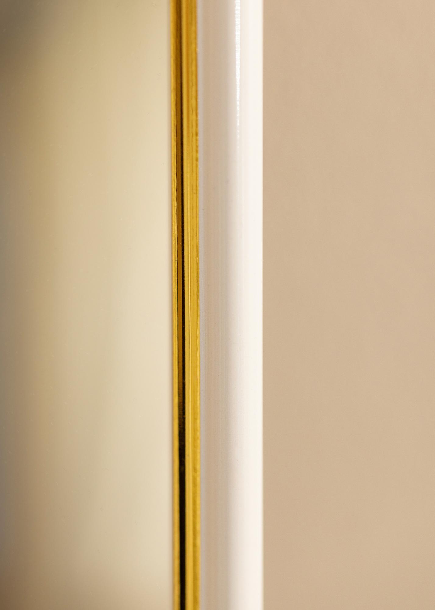 Orientez-vous vers des détails discrets et luxueux pour une maison élégante. Ce miroir sur mesure est conçu dans notre atelier d'encadrement selon vos souhaits. La bordure blanche a une partie dorée au plus proche du verre. Assortissez-le avec goût à aux éléments intérieurs en blanc, noir, or et pastel !