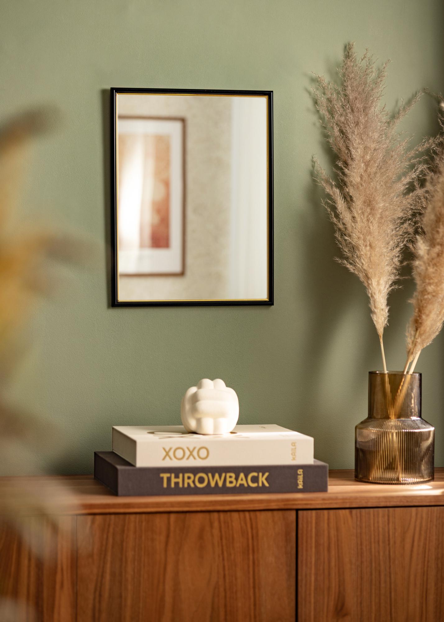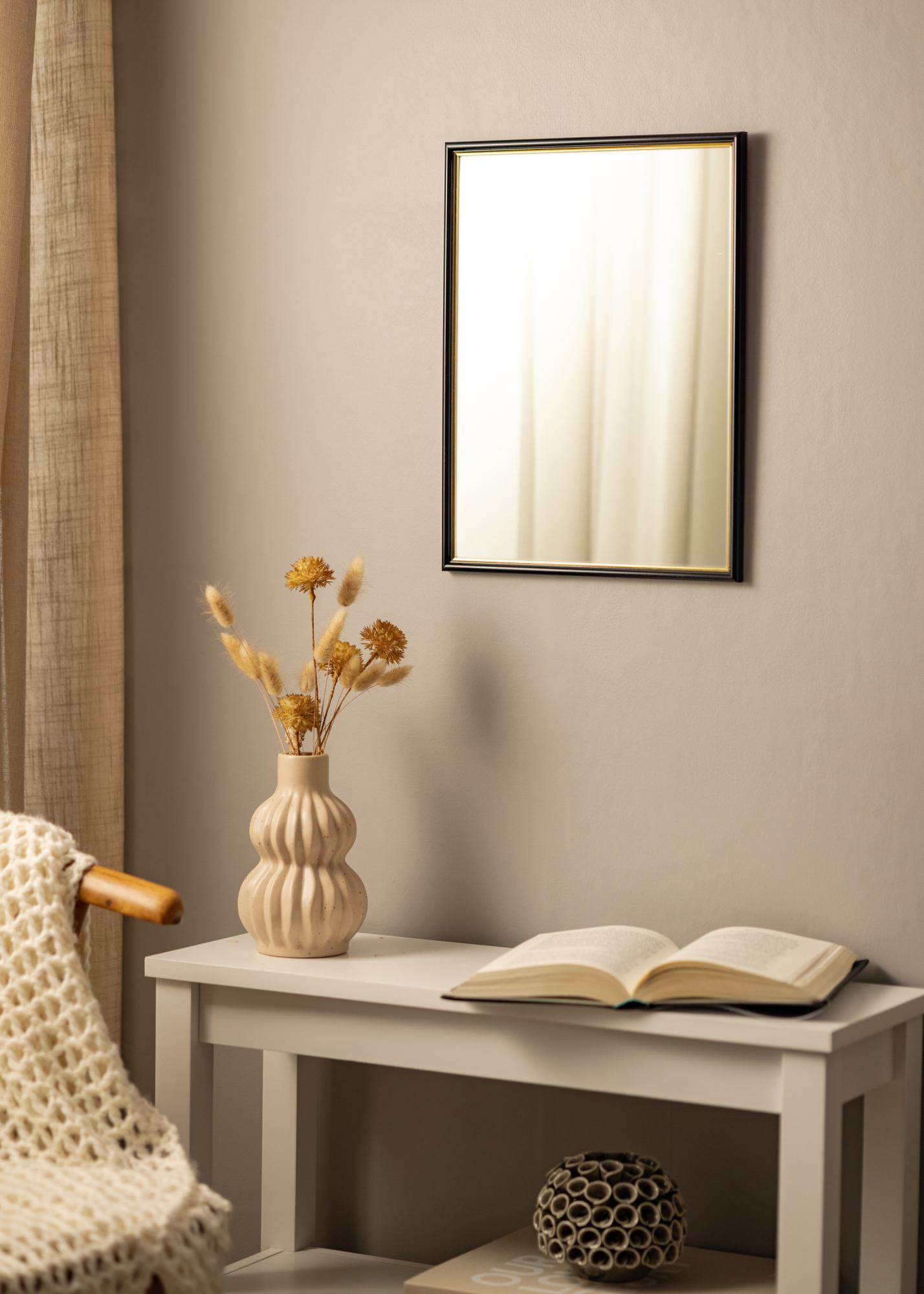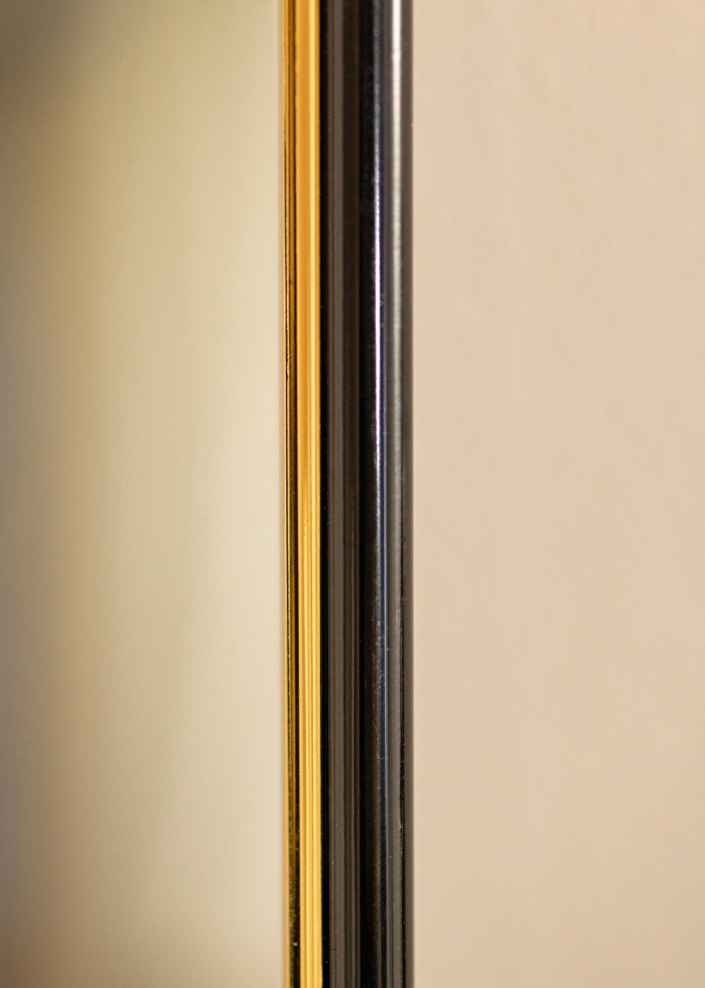 Changez d'ambiance dans le hall d'entrée, la salle de bain ou le salon en accrochant ce miroir luxueux ! Le miroir est noir avec une partie dorée proche du verre. Les couleurs se marient bien avec les détails intérieurs, par exemple, noir, or, violet ou pastel. Parce qu'il est conçu selon vos souhaits, vous pouvez être certain qu'il s'adaptera parfaitement là où vous le souhaitez.