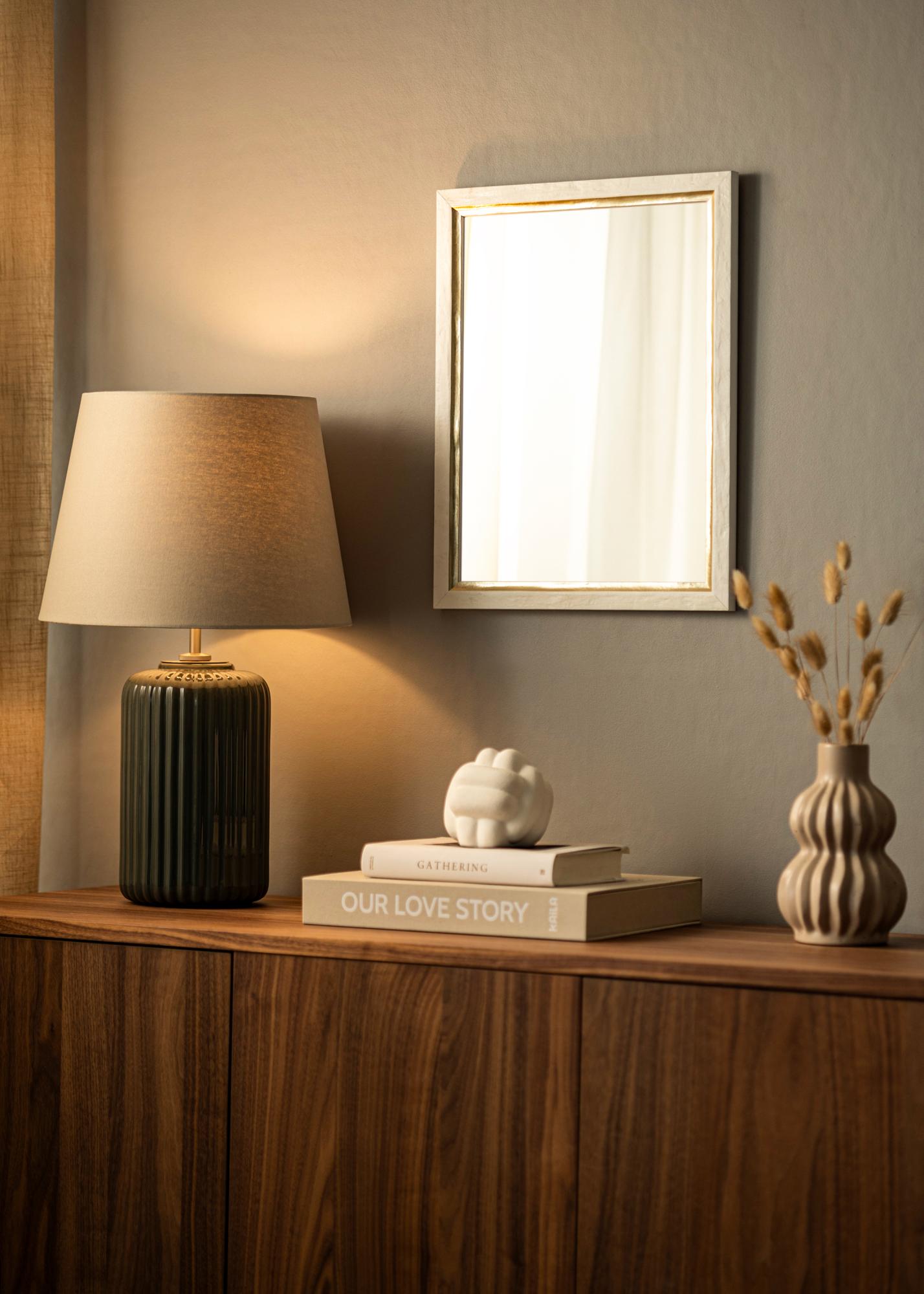 "Leonie" est un large miroir fabriqué en Italie, ce qui garantit une qualité supérieure et un beau design. Le miroir a un profil élégant en blanc avec une surface clairement structurée au large bord argenté au plus proche du verre du miroir.