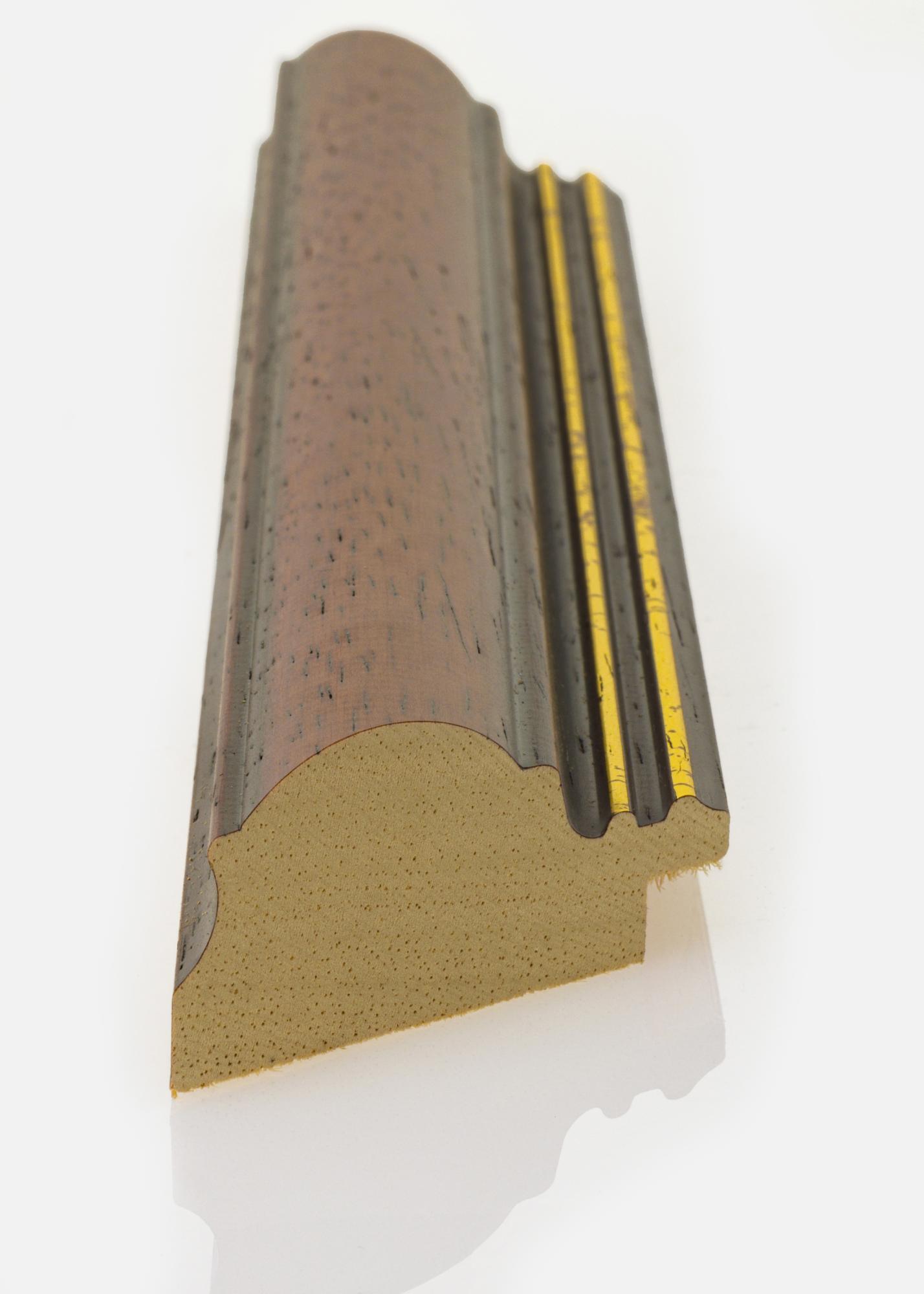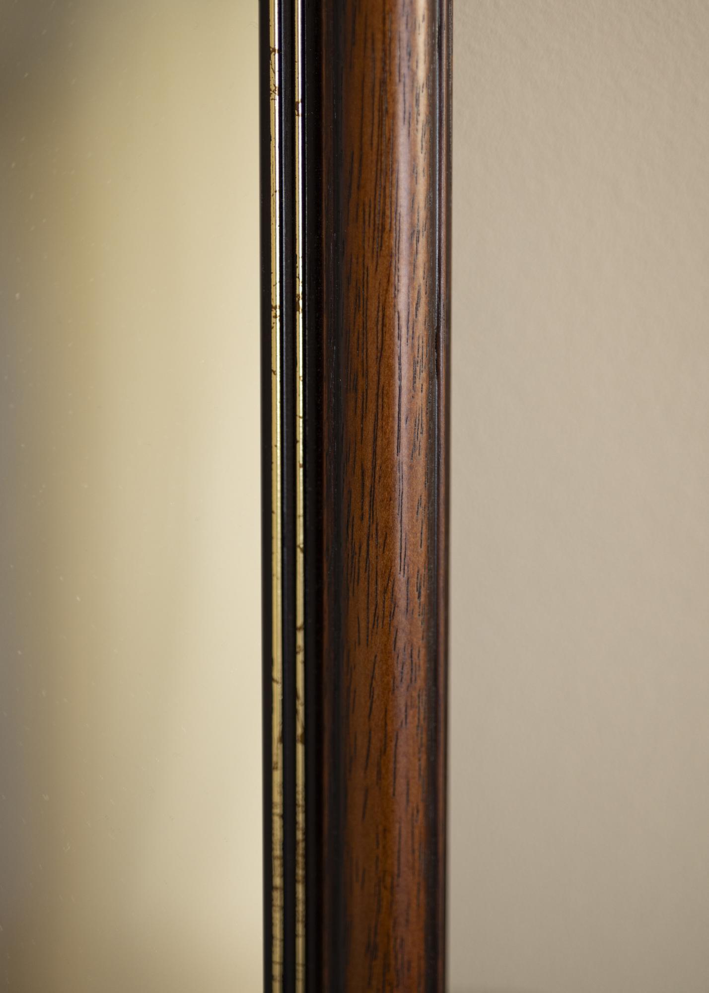 Lancer le sélecteur de cadre »Orsa est un miroir au style classique à la couleur de base brune avec des éléments noirs combinés à deux lignes dorées.