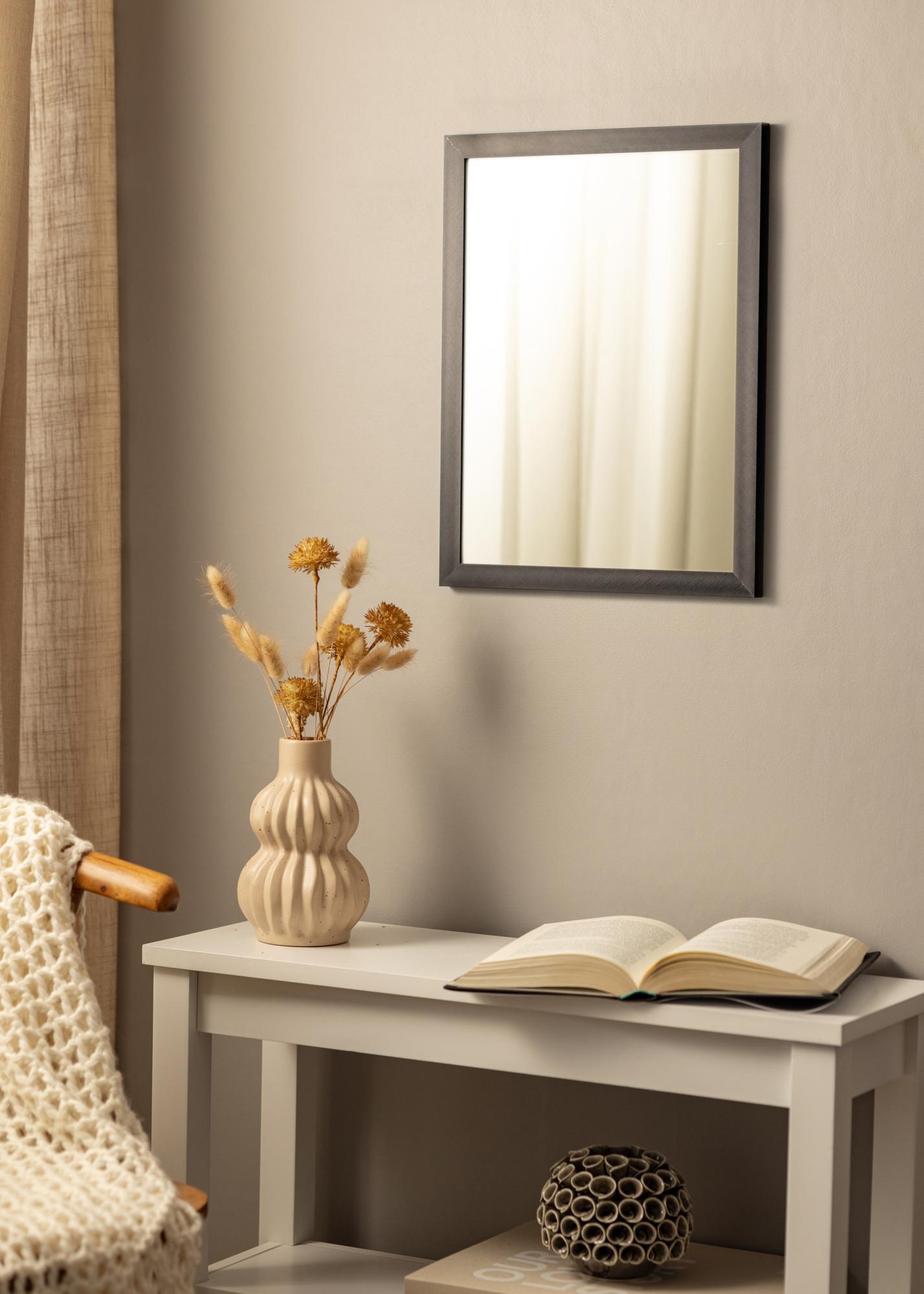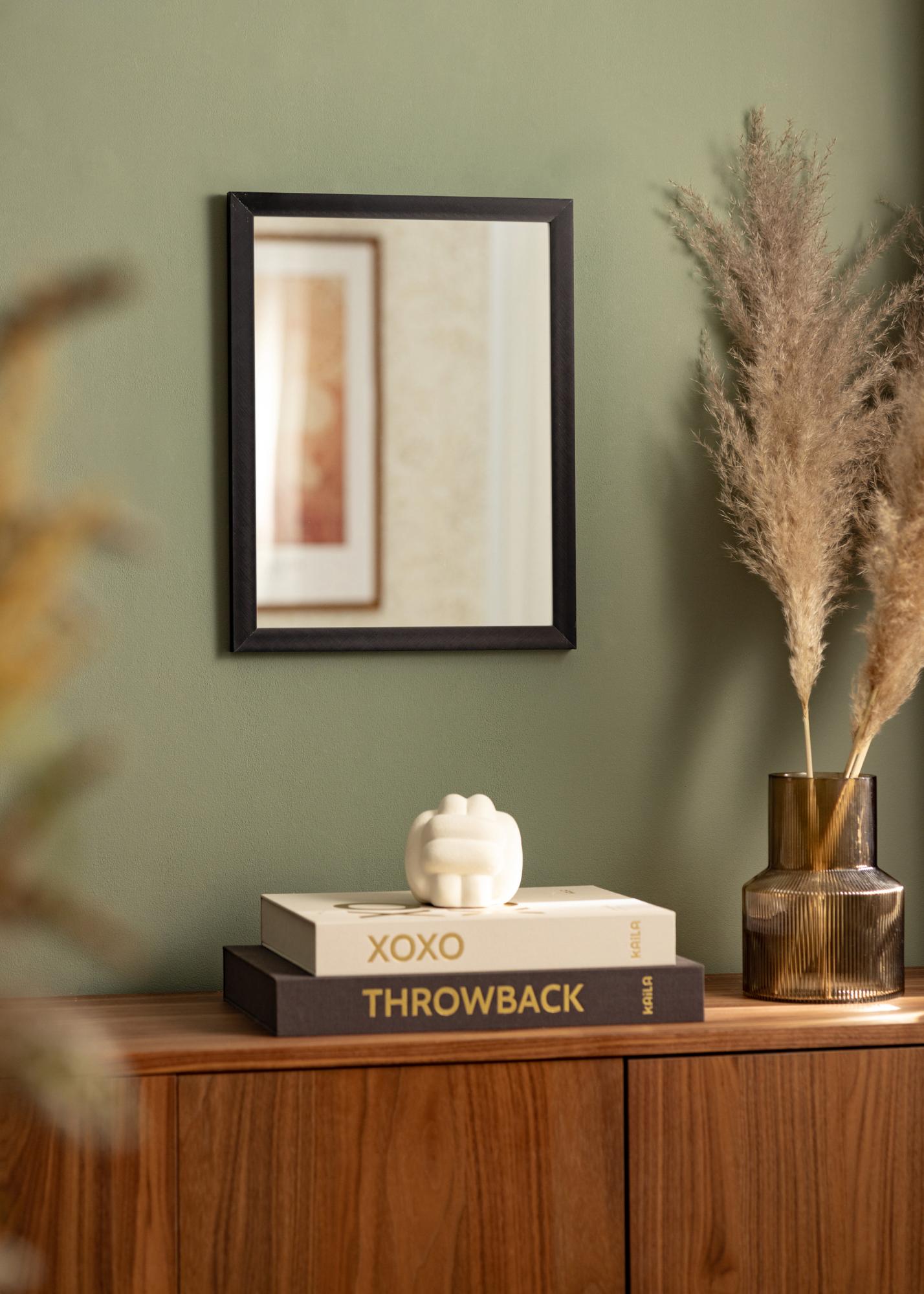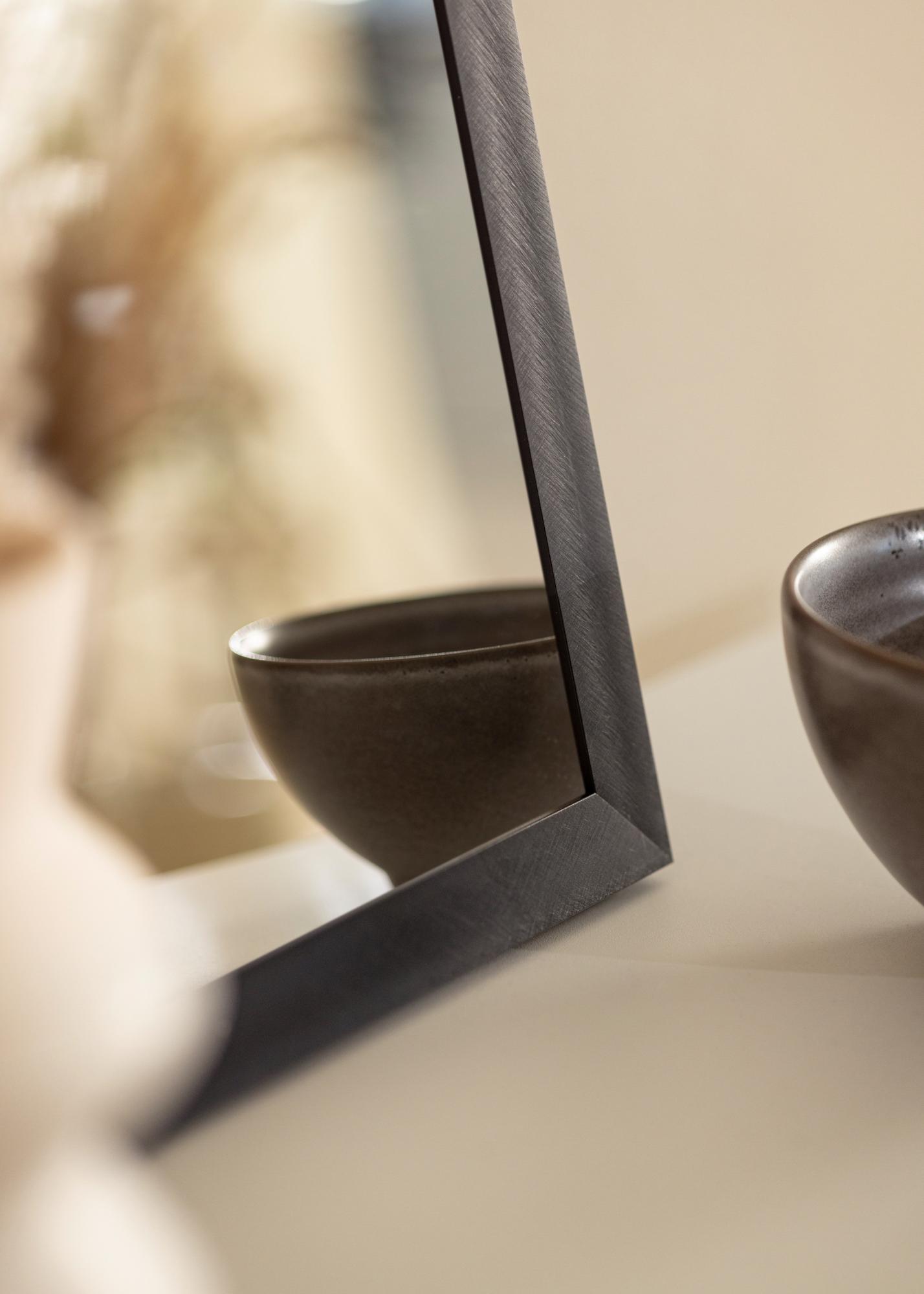 Miroir épuré noir avec un cadre en aluminium qui s'adapte à tous les types d'intérieurs et d'environnements. La bande de cadre noire est étroite mais néanmoins stable et a une apparence minimaliste. Le cadre du miroir est facile à placer avec sa forme stricte et est agréable à combiner avec des peintures avec des motifs graphiques dans des cadres noirs. Un miroir peut également être utilisé pour donner l'impression que la pièce est plus grande, ou pour illuminer une pièce sombre lorsqu'il est placé en face d'une fenêtre.