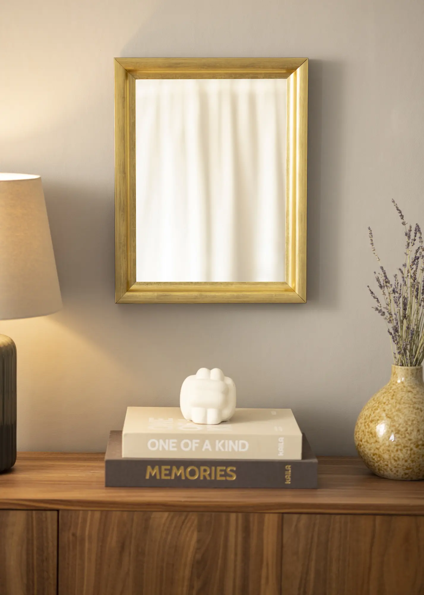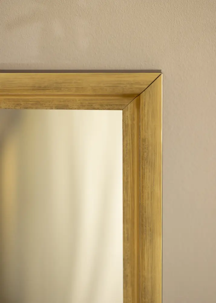 Miroir classique dont vous choisissez la taille du miroir que vous désirez. Avec son profil large et profond, il est assuré d'être un miroir que vous remarquerez. Le miroir a un ton doré doux et agréable qui donne une belle et confortable sensation.