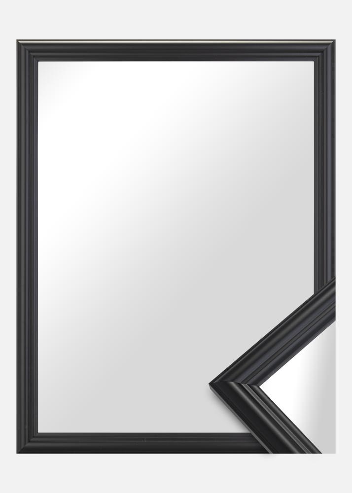 "Miroir miroir sur le mur là-bas, dites-moi qui est le plus intelligent du pays." "Oh, mais c'est bien vous qui avez commandé un joli miroir complètement selon vos propres souhaits!" Tout ce que vous devez faire pour recevoir le format parfait pour cet élégant miroir est de mesurer la zone où il sera apposé et de remplir les mesures ci-dessus. Nous faisons le reste ! Le miroir a une bordure profilée en bois classique qui se présente intégralement en noir, ce qui le rend facile à assortir avec la tapisserie et le décor. N'hésitez pas à compléter avec des cadres photo de la même série pour un mur uniforme et agréable.