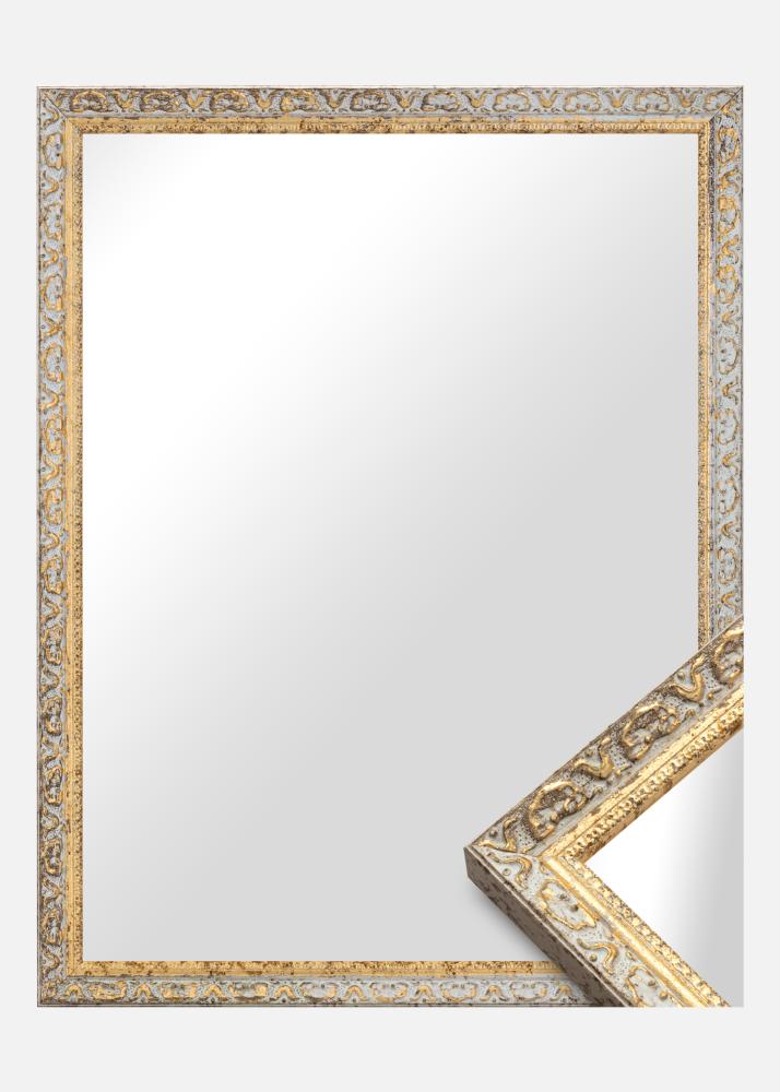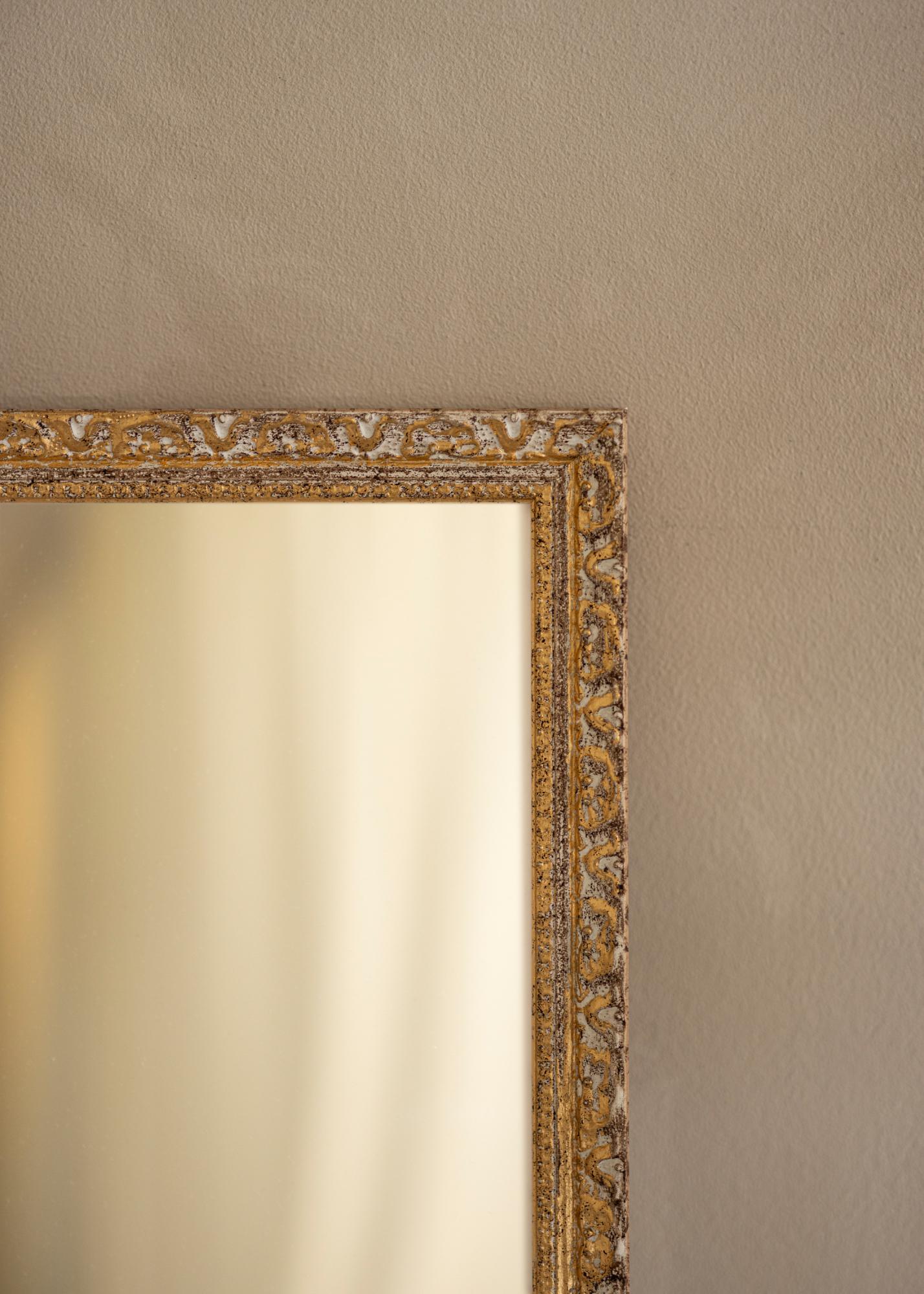 Lancer le sélecteur de cadre »Beau cadre de miroir d'inspiration rétro et de haute qualité avec un design exclusif en argent et or fabriqué en Italie.