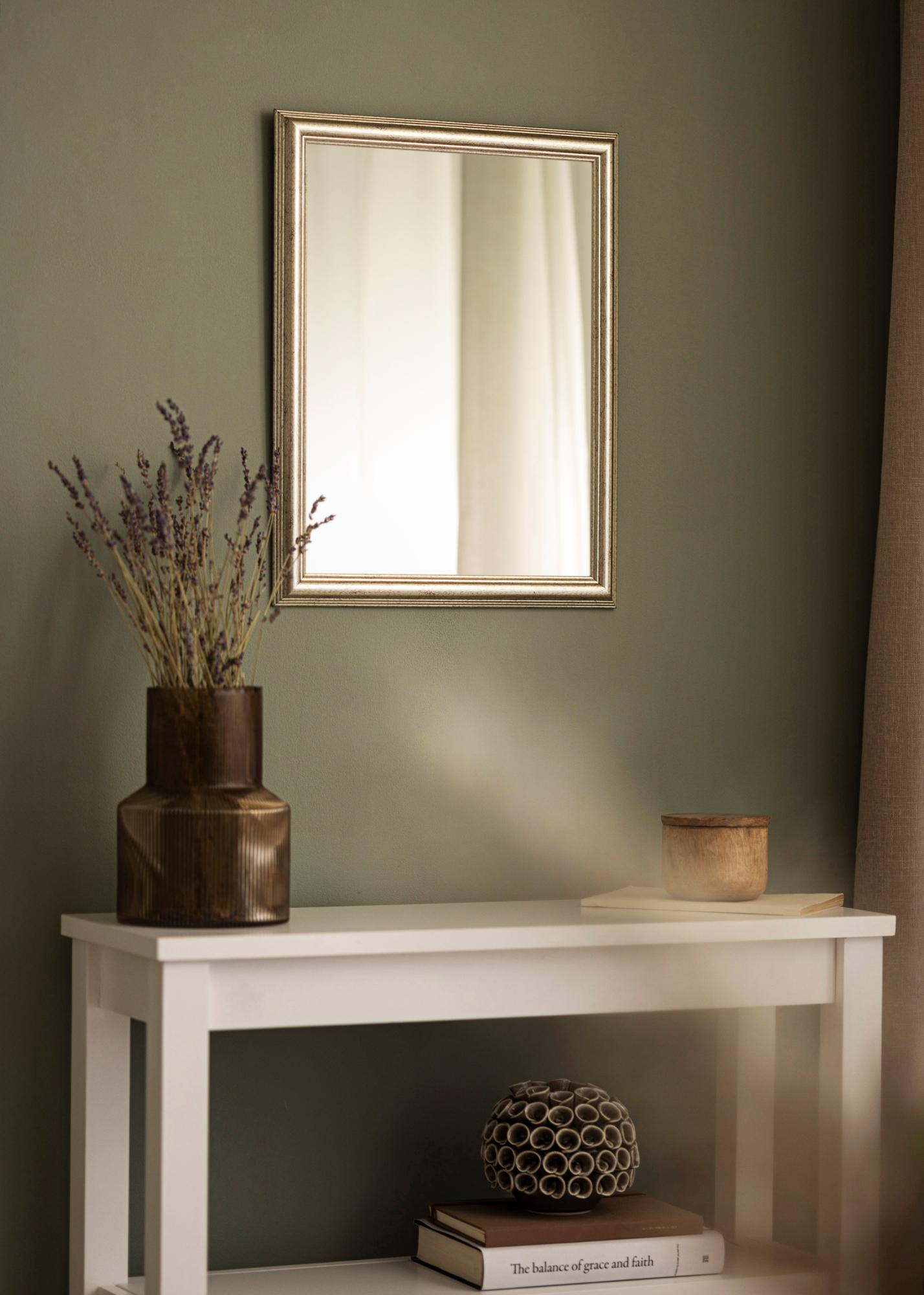 Beau miroir de couleur argent qui devient une partie naturelle de votre intérieur. Parfait lorsque vous recherchez un miroir avec un sens de l'élégance.