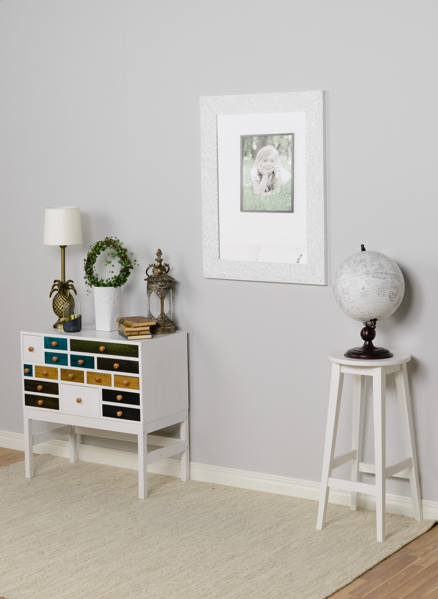 Mettez des motifs sur les murs et ils seront beaucoup plus amusants à regarder ! Ici, nous avons un charmant miroir qui se présente tout en blanc avec une surface à motif circulaire. Le cadre du miroir est fabriqué en bois issu d'une sylviculture durable. Étant donné qu'il est disponible en plusieurs tailles différentes, vous pouvez facilement en trouver un qui convient à votre maison.