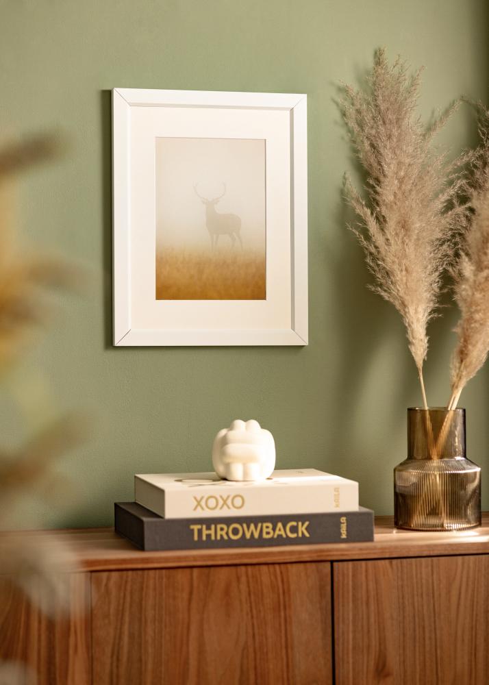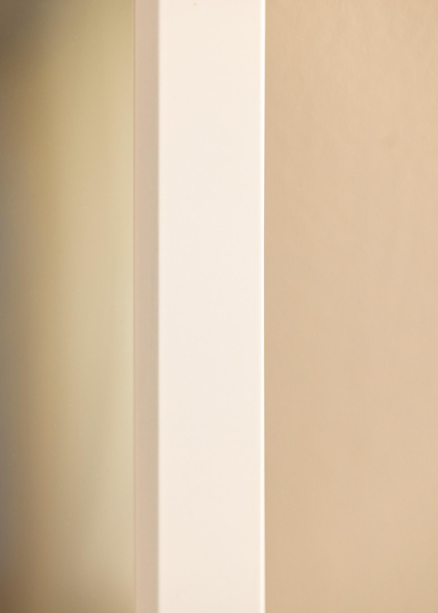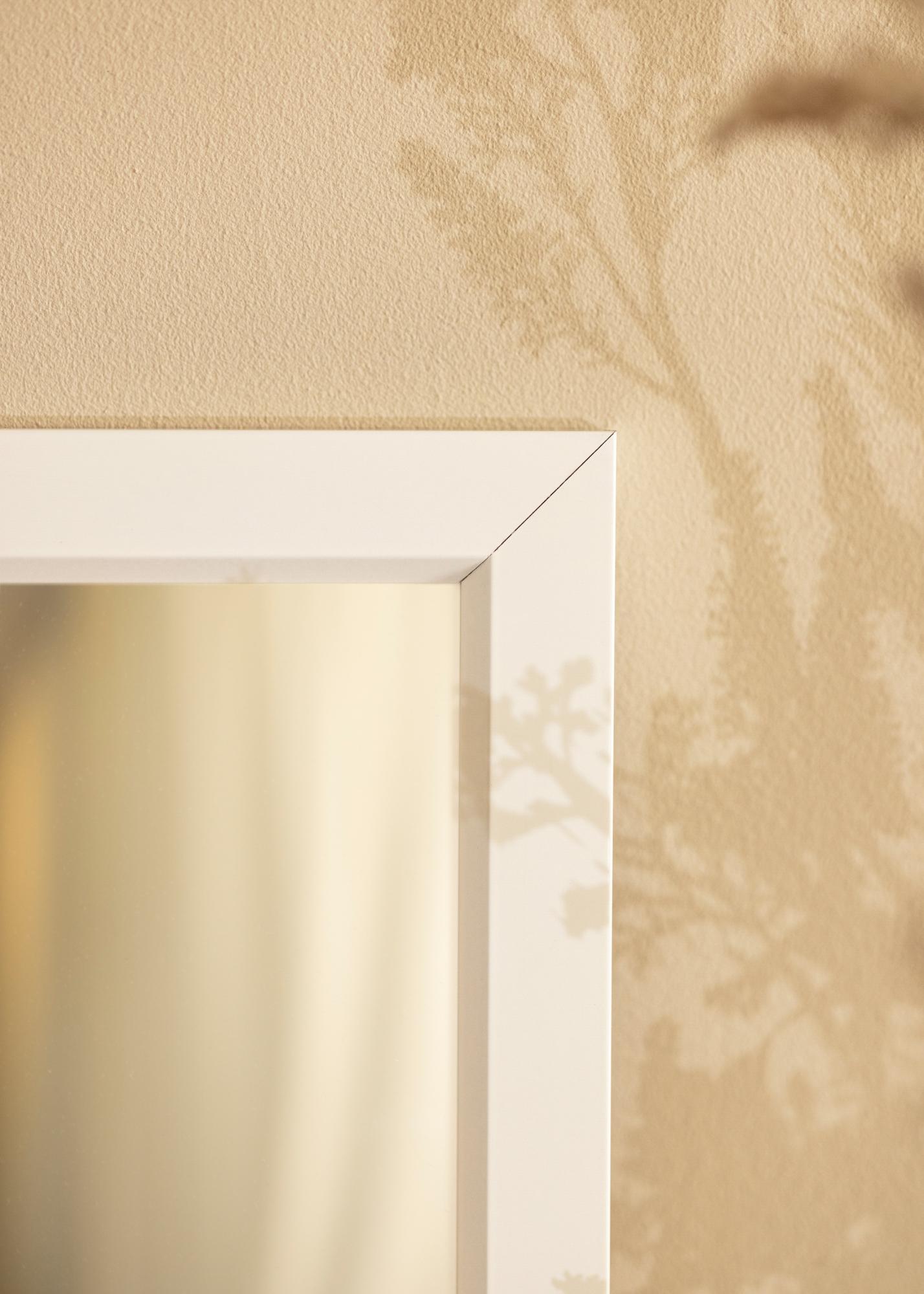 Miroir épuré avec un simple cadre blanc en aluminium avec un bord intérieur biseauté. L'apparence élégante et fine du cadre rend le miroir bien adapté pour toutes les pièces de la maison, quel que soit le style de décoration intérieure, mais il est d'autant plus joli dans un intérieur lumineux avec un penchant pour le minimaliste. Combinez agréablement le miroir avec des posters graphiques aux cadres blancs sur les murs et des objets en verre comme accessoires pour créer une sensation d'un intérieur lumineux et aéré.