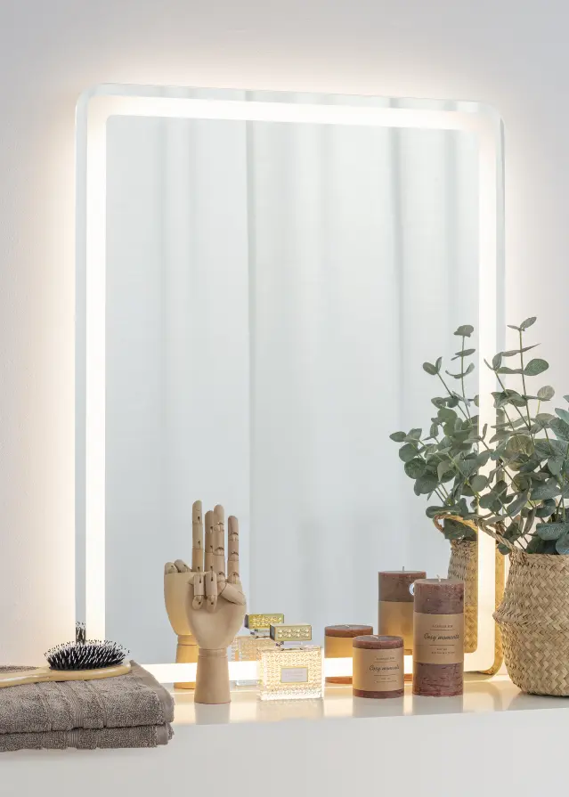 Miroir rectangulaire avec des bords doux et un éclairage LED