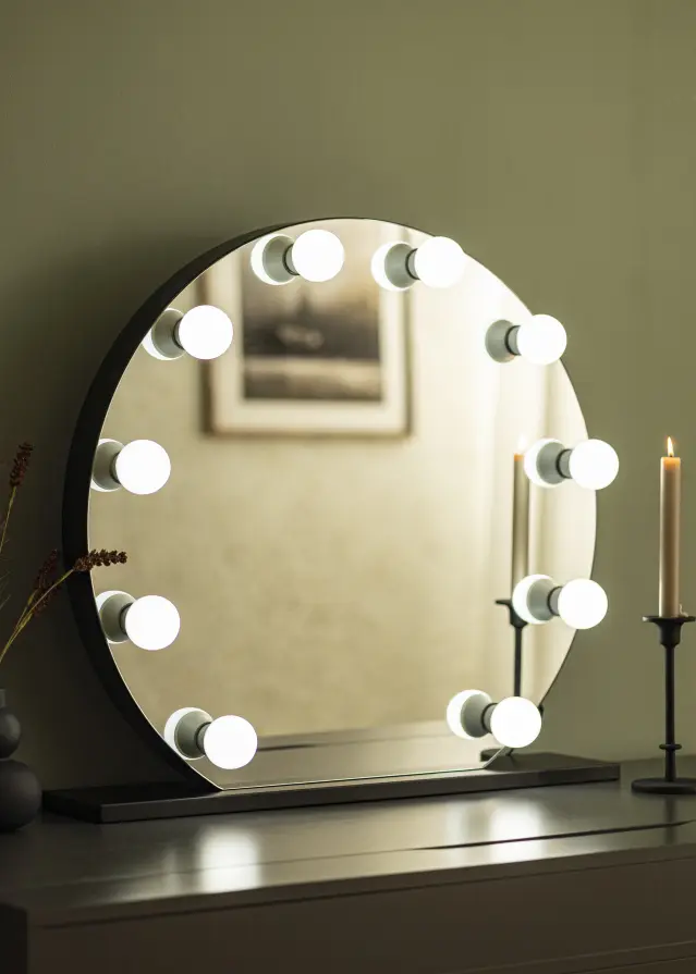 Miroir de maquillage glamour de forme ronde avec éclairage LED