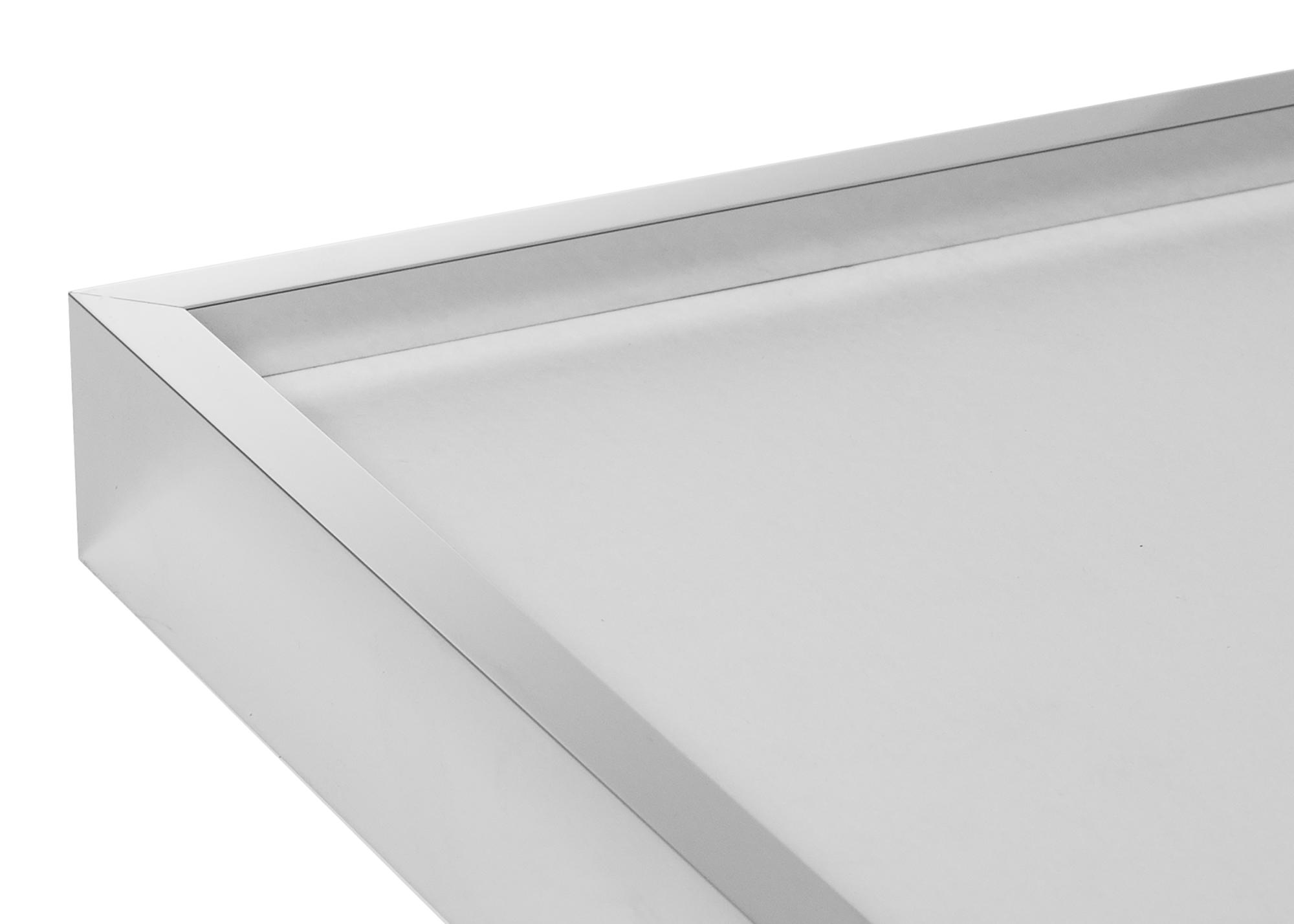 Élégant cadre photo argenté brillant de haute qualité fabriqué en Allemagne, doté d'une baguette d'encadrement fine en aluminium. Le design minimaliste de ce cadre le fait s'intégrer dans un intérieur au style dépouillé et sa discrète couleur gris clair argenté convient tout aussi bien pour encadrer des photographies que des posters. Le grand choix de formats rend ce cadre parfait à utiliser dans un collage de tableaux que vous voulez lier par le choix du modèle de cadre.