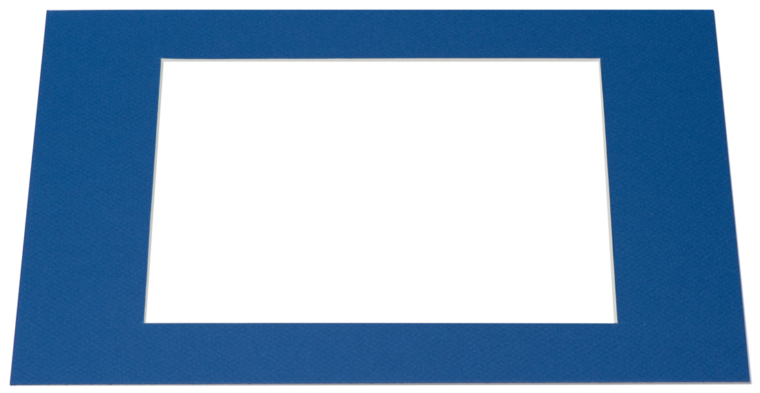 Le passe-partout Canson bleu (avec un centre blanc) est entièrement fabriqué selon vos souhaits ! Suivez nos instructions pour calculer en toute facilité les dimensions qui conviendront à votre photo.