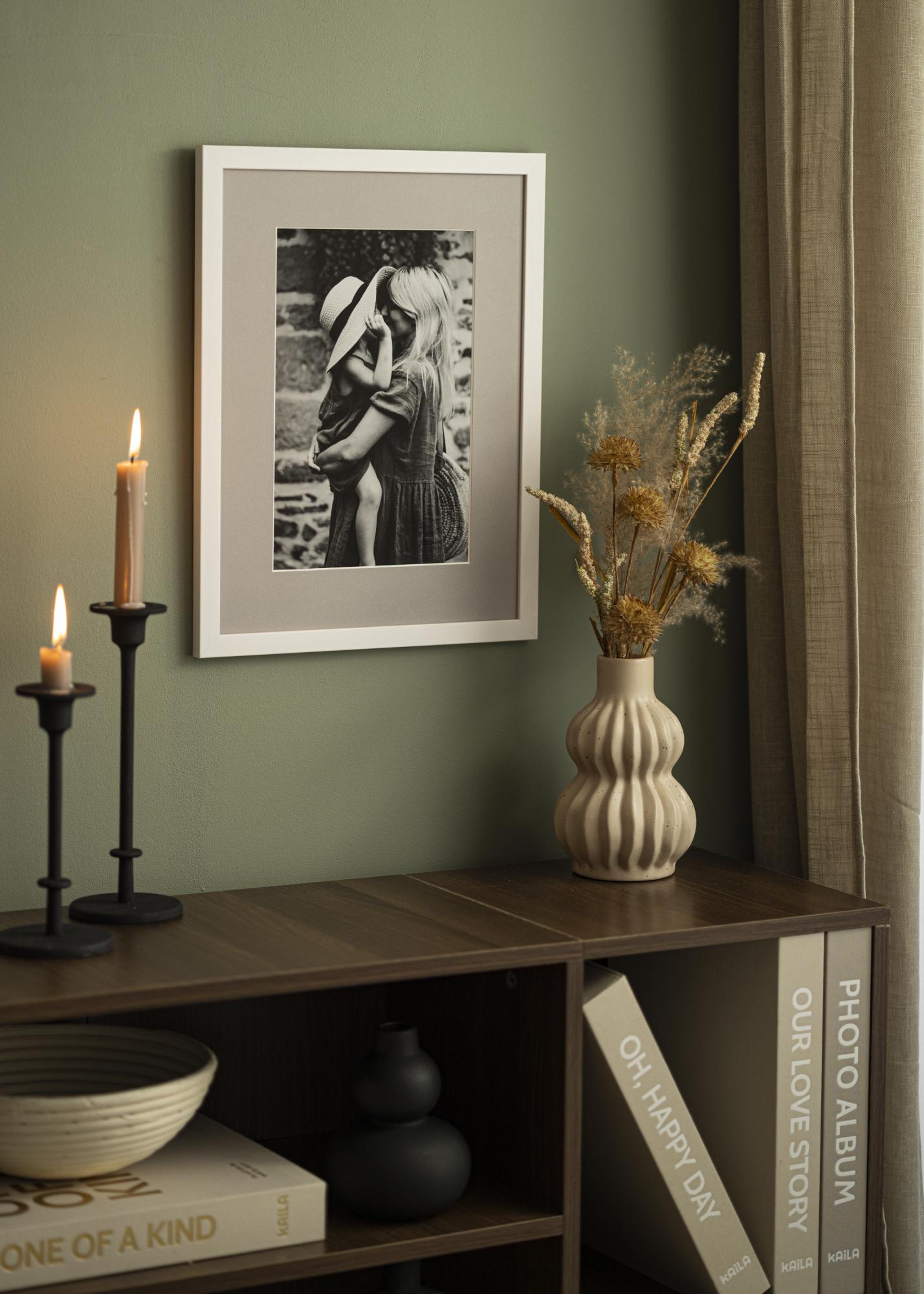 Un passe-partout est un détail élégant qui offre à vos images un encadrement exclusif - et si vous choisissez un modèle de couleur grise, l'ensemble du tableau sera d'une expression très sophistiquée. Ce passe-partout gris robuste aux bords intérieurs blancs biseautés est conçu en carton sans acide ni lignine et à des propriétés conservatrices. Sa matière sans acide prend soin de vos images et les empêche de jaunir avec le temps.
