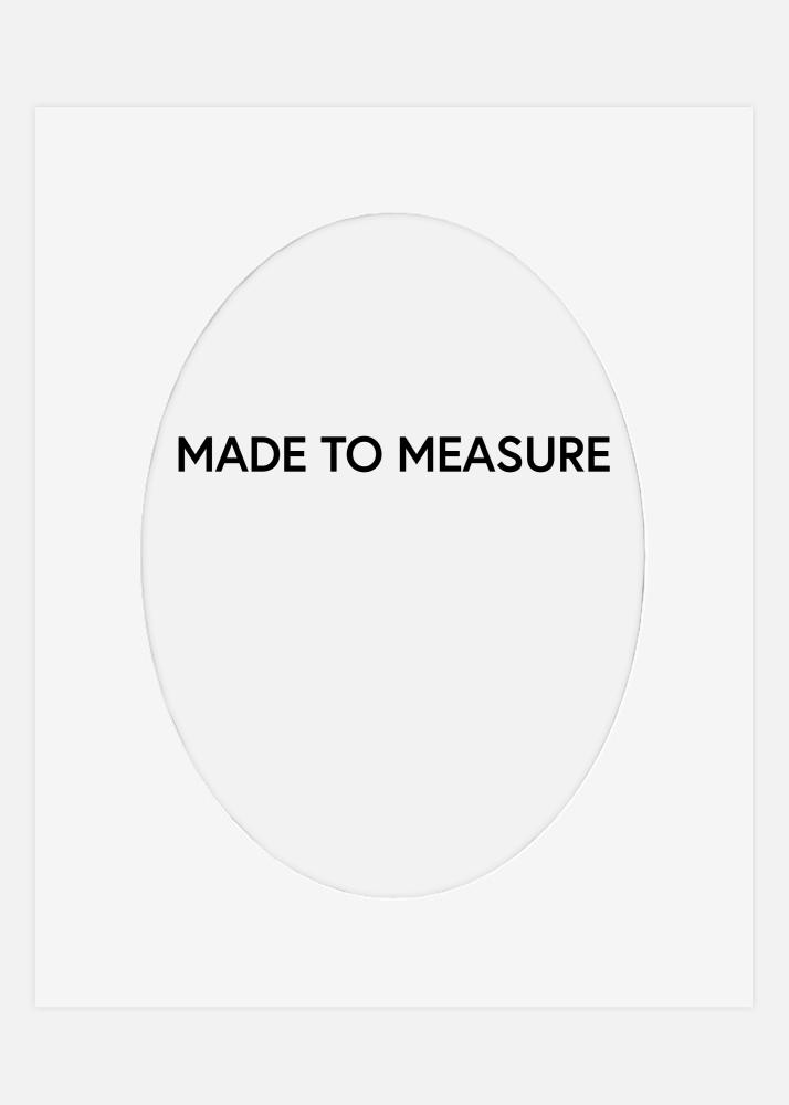 Passe-partout blanc ovale ou rond à vos mesures avec une bordure blanche biseautée à 45 degrés le long du motif. Un très bon choix pour les portraits de style classique.