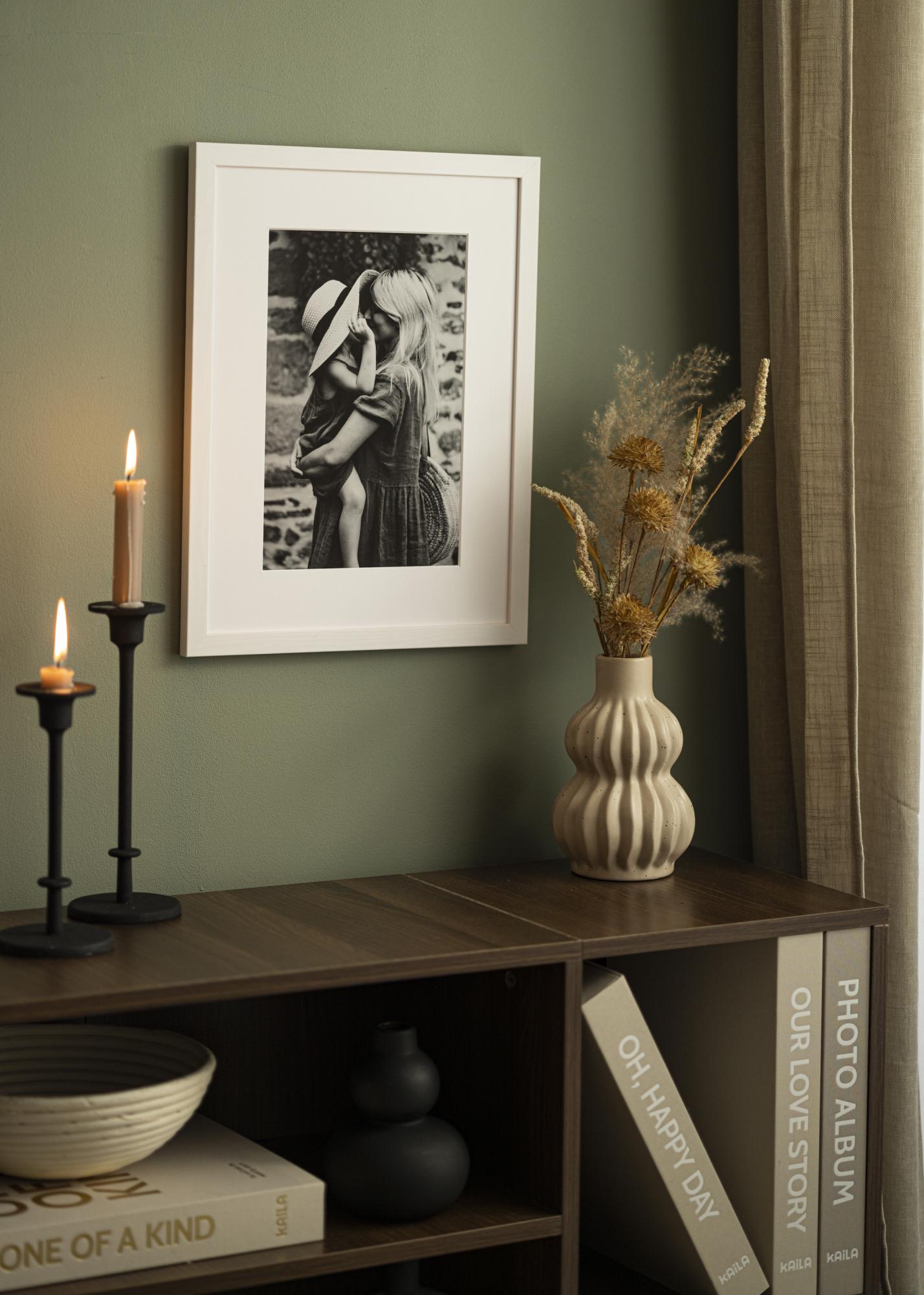 passe-partout Supervit permet au motif d'attirer toute l'attention, grâce à sa couleur extra blanche et ses bords taillés en biseau en bordure d'image. Un passe-partout blanc apporte de plus un aspect aéré et élégant ! Ce passe-partout convient pour tous les cadres que nous proposons - rappelez-vous simplement que les dimensions extérieures du passe-partout doivent correspondre à la taille du cadre.