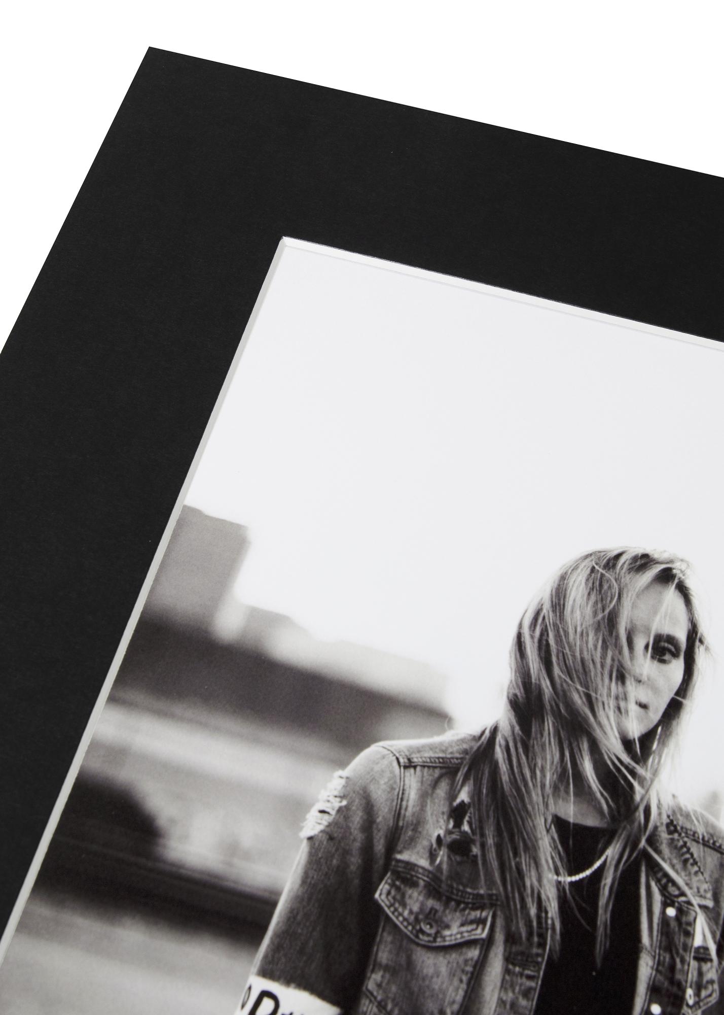 Ce passe-partout est fabriqué en carton sans acide, garantissant que vos œuvres d'art et photographies sont préservées dans les meilleures conditions possibles sans jaunir avec le temps. Le bord biseauté a un noyau blanc qui offre un effet de contraste subtil contre la surface noire, renforçant encore plus la présence du sujet.