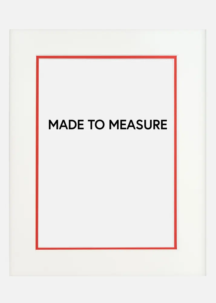 Passe-partout sur mesure à deux couches avec un passe-partout blanc comme base et une couche inférieure de couleur rouge qui donne une bordure colorée de 5 mm autour de l'image. Parfait lorsque vous souhaitez un encadrement spectaculaire qui met en valeur votre image et donne une profondeur supplémentaire au motif. Tous nos passe-partout ont des bordures nettement coupées à un angle de 45 degrés, ce qui donne un encadrement sérieux et professionnel à vos photos.