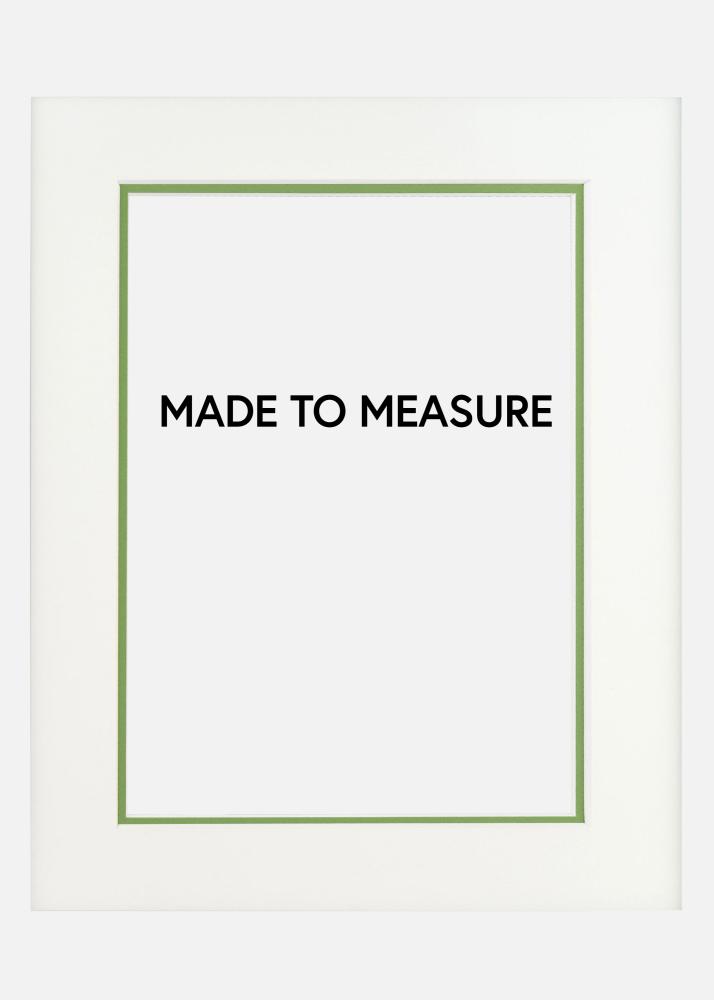 Passe-partout sur mesure à deux couches avec un passe-partout blanc comme base et une couche inférieure de couleur verte qui donne une bordure colorée de 5 mm autour de l'image. Parfait lorsque vous souhaitez un encadrement spectaculaire qui met en valeur votre image et donne une profondeur supplémentaire au motif. Tous nos passe-partout ont des bordures nettement coupées à un angle de 45 degrés, ce qui donne un encadrement sérieux et professionnel à vos photos.
