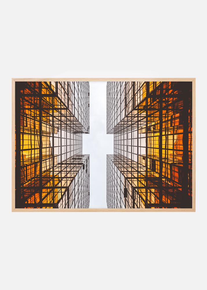 Affiche avec architecture futuriste qui, avec ses lignes graphiques, crée un motif excitant. Les couleurs se fondent du orange profond à la base du bâtiment vers le ciel blanc. Le poster s'associe bien avec un cadre plus fin dans un décor minimaliste comme dans d'autres styles avec des éléments graphiques. Associez-le volontiers avec d'autres posters sur des architectures fascinantes ou des environnements urbains.