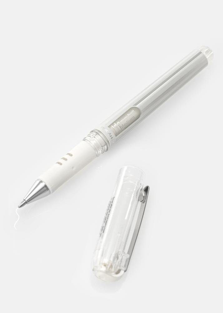 Stylo de la marque Pentel de couleur blanche. Ce stylo a une largeur de pointe de 1 mm.