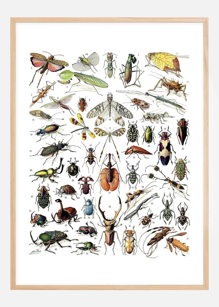 Apportez la nature dans votre maison en accrochant cette magnifique affiche scolaire ! Le motif provient d'un vieux livre d'entomologie et il dépeint un grand groupe d'insectes colorés. Comme l'affiche est disponible en plusieurs tailles, vous trouverez facilement celle qui convient pour votre usage. N'hésitez pas à la compléter avec un cadre élégant de notre large sélection !
