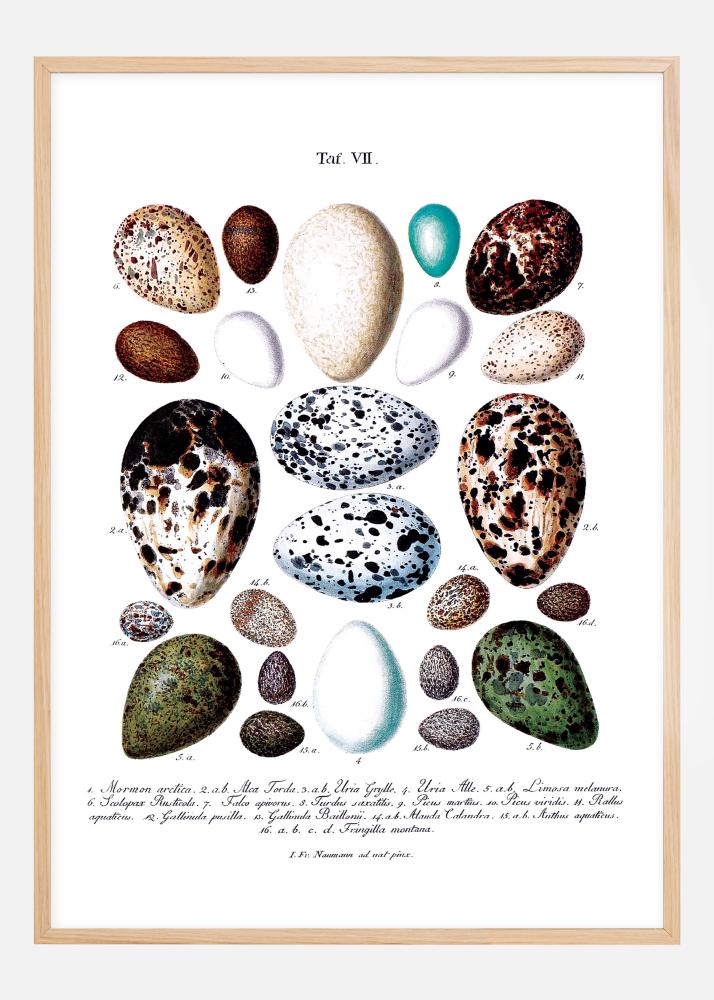 Aimez-vous la couleur et la forme ? Alors, vous avez peut-être pensé que la nature est le designer le plus habile ! Cette affiche est une copie d'une ancienne affiche scolaire qui dépeint différents œufs d'oiseaux. Sous les œufs colorés, vous trouverez des numéros qui renvoient à un texte descriptif en latin au bas. Le texte informe à quelle espèce d'oiseau chaque œuf appartient. Une affiche très belle pour ceux qui aiment combiner le vintage avec des couleurs naturelles ! Comme l'affiche est disponible en plusieurs tailles, vous trouverez facilement celle qui vous convient. N'hésitez pas à compléter avec un cadre élégant de notre large gamme.