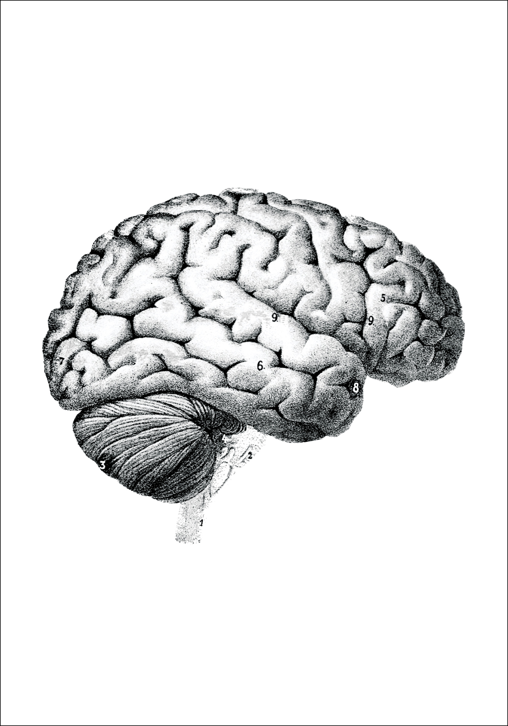 Affiche - Parties du cerveau - L'affiche est imprimée dans notre propre studio de prints sur un papier premium de 230 grammes qui est certifié FSC et résistant au vieillissement. Nous avons choisi cette épaisseur robuste et cette surface mate parce qu'elle offre une sensation de qualité et produit une belle impression sans reflets. Comme le papier provient de forêts gérées de manière durable et que nous imprimons le produit nous-mêmes, notre impact sur l'environnement est réduit.