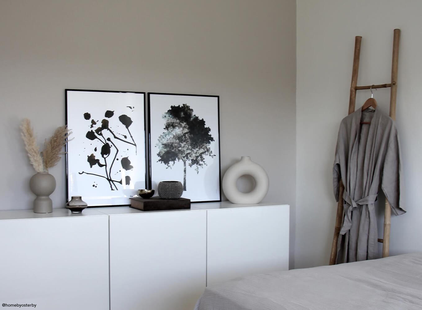 Nous avons vu de plus en plus de gens qui, au lieu d'accrocher leurs tableaux, choisissent de simplement les appuyer contre le mur. L'alternative idéale si vous souhaitez avoir des tableaux sans faire de trous dans le mur – ou tout simplement parce que c'est joli, créatif et un peu différent !