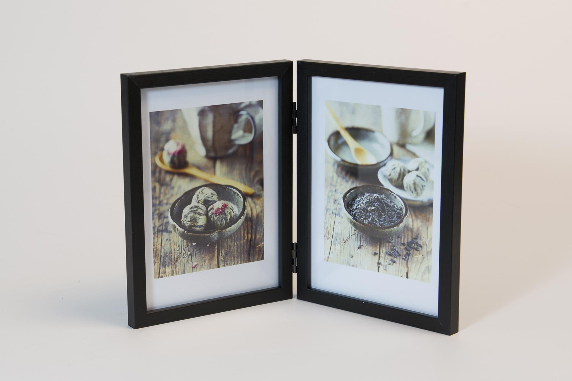 Le cadre pliant Rock noir a de la place pour 2 photographies. Ce cadre a un profil carré moderne en bois laqué noir.