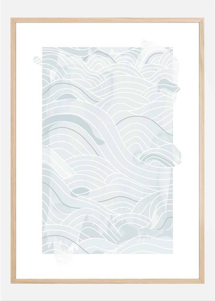 Une affiche d'océan avec des lignes abstraites bleues et des vagues sur un fond blanc. Différents tons de bleu d’épaisseurs de lignes se combinent pour créer ces vagues ondulantes sur la page. Laissez votre esprit vagabonder et laissez-vous emporter par ce doux motif océanique.