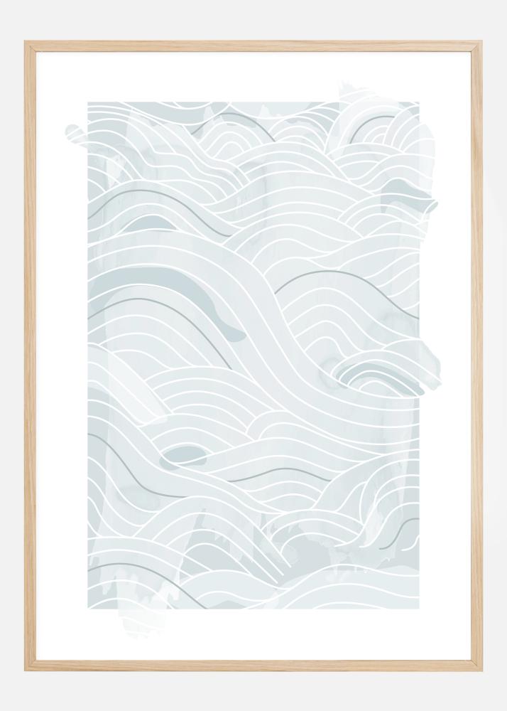 Une affiche d'océan avec des lignes abstraites bleues et des vagues sur un fond blanc. Différents tons de bleu d’épaisseurs de lignes se combinent pour créer ces vagues ondulantes sur la page. Laissez votre esprit vagabonder et laissez-vous emporter par ce doux motif océanique.
