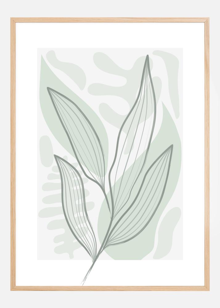 Une affiche abstraite de feuilles sur un simple fond vert avec différentes formes et motifs feuillus. Verts et gris doux, et souligné d’un trait gris, il dégage de puissantes vibrations printanières. Une sensation de douceur peut être ajoutée à n'importe quelle pièce de la maison.