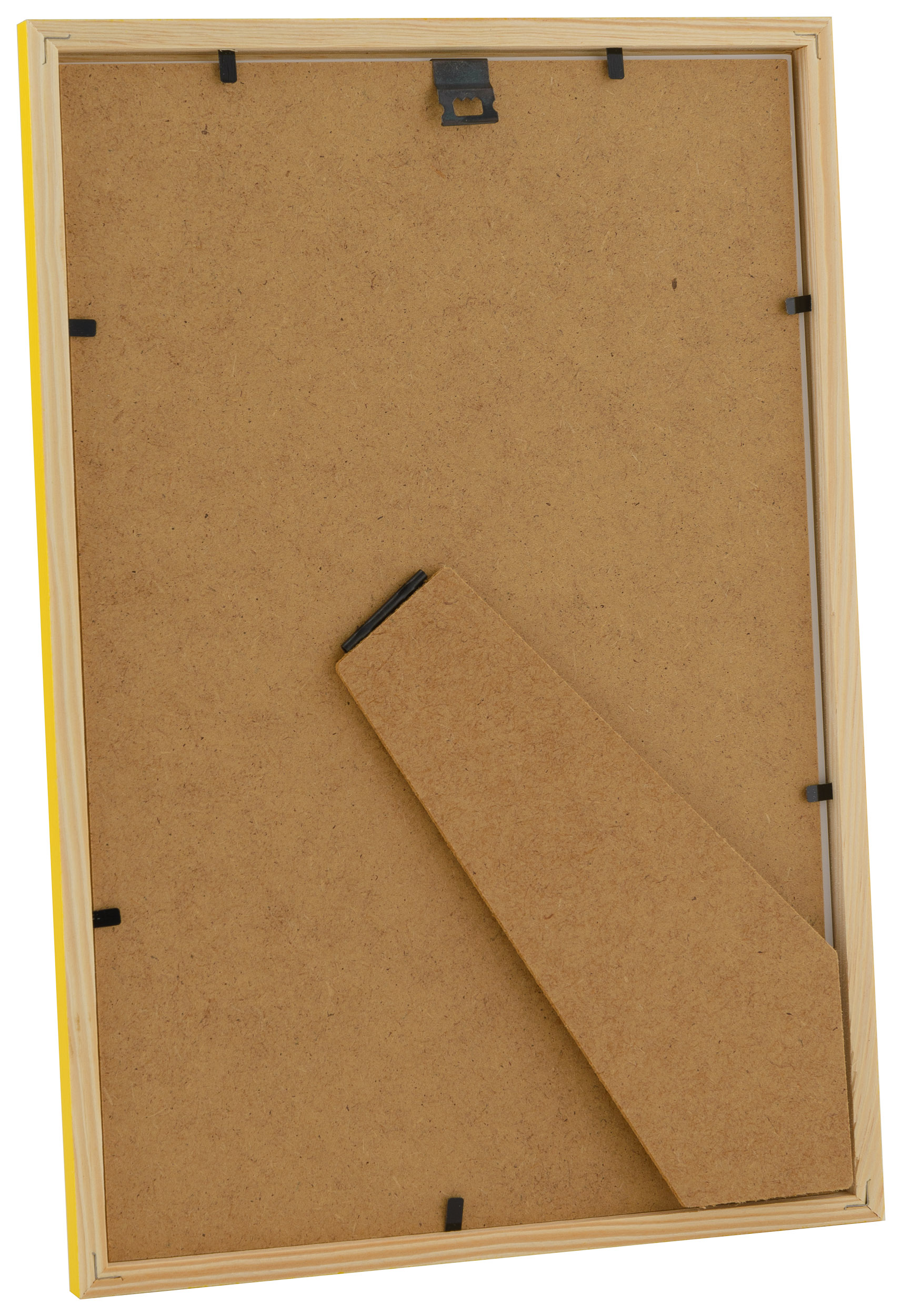 Ce cadre photo a une fine baguette d'une largeur de 12 mm et d'une profondeur de 12 mm. Au dos, se trouvent des supports muraux et une plaque arrière en MDF. Lorsque vous insérez votre image, détachez la plaque arrière à l'aide des broches pliables qui maintiennent la plaque en place, et placez ensuite votre motif.