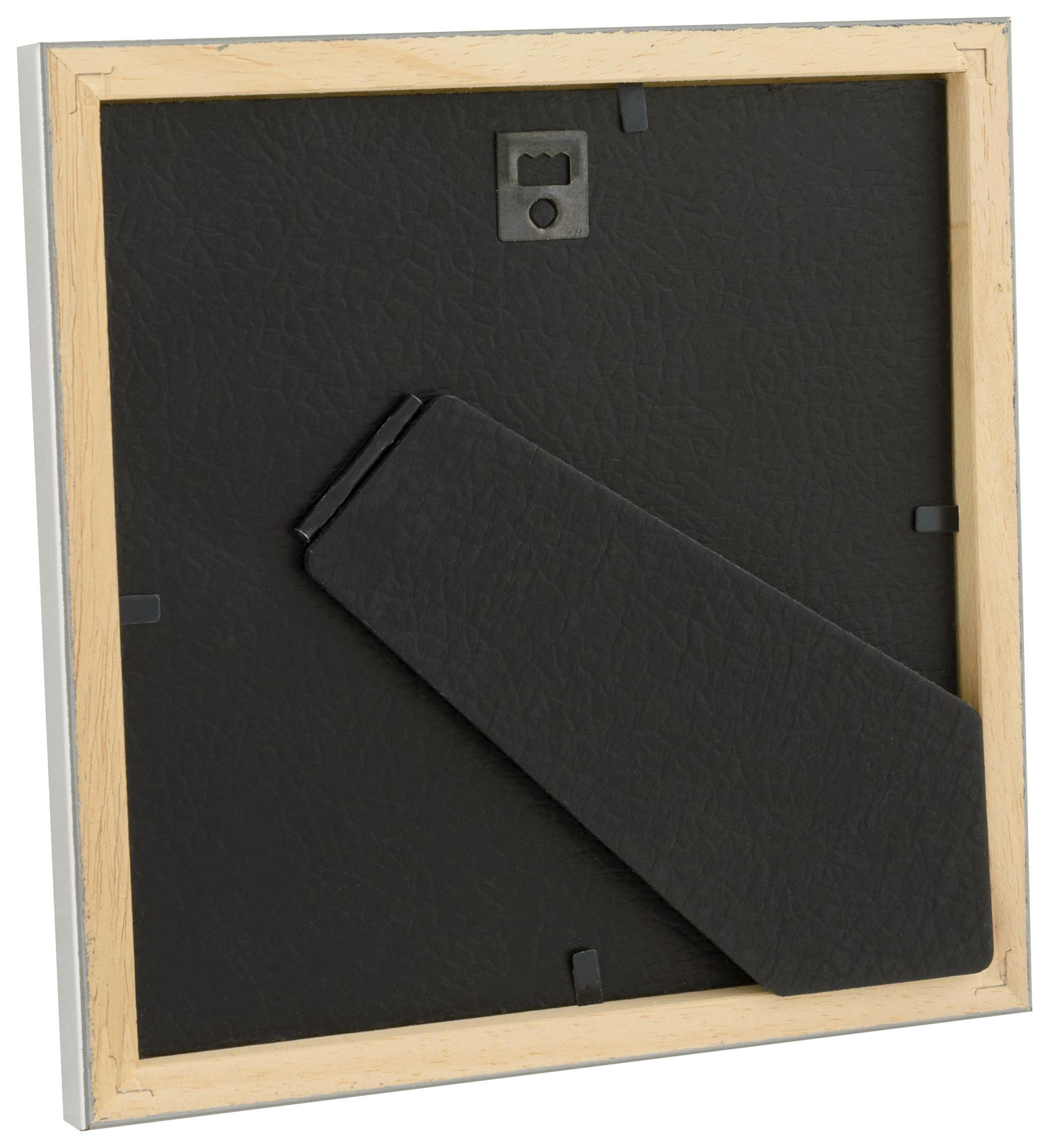 Placez votre photo, votre peinture ou votre poster dans cet élégant cadre ! Ce cadre en bois peint de couleur argentée est doté d'un verre antireflet. Le panneau arrière et le pied sont recouverts de simili cuir noir qui apporte une sensation de luxe supplémentaire.