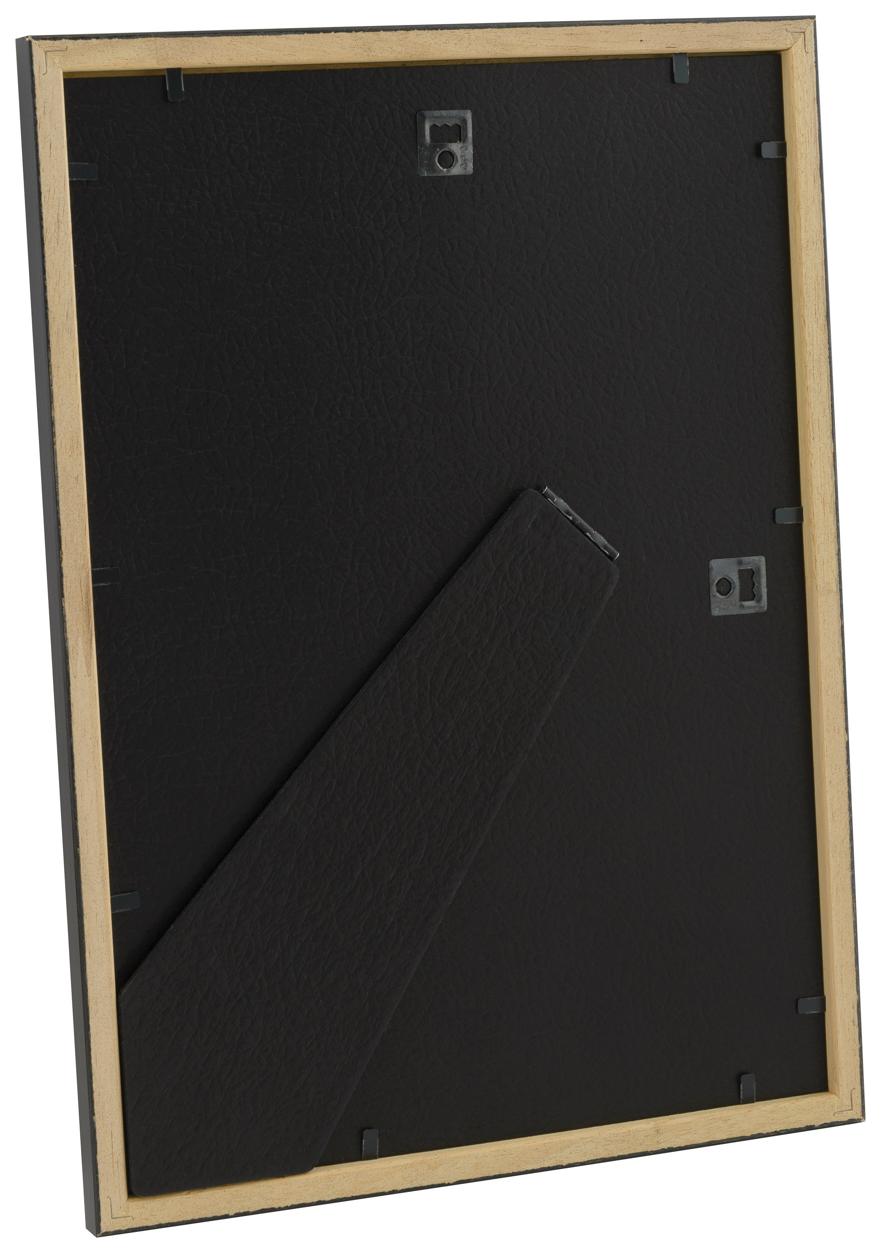 Placez votre photo, votre peinture ou votre poster dans cet élégant cadre ! Ce cadre en bois peint de couleur noire est doté d'un verre antireflet. Le panneau arrière et le pied sont recouverts de simili cuir noir qui apporte une sensation de luxe supplémentaire./p>