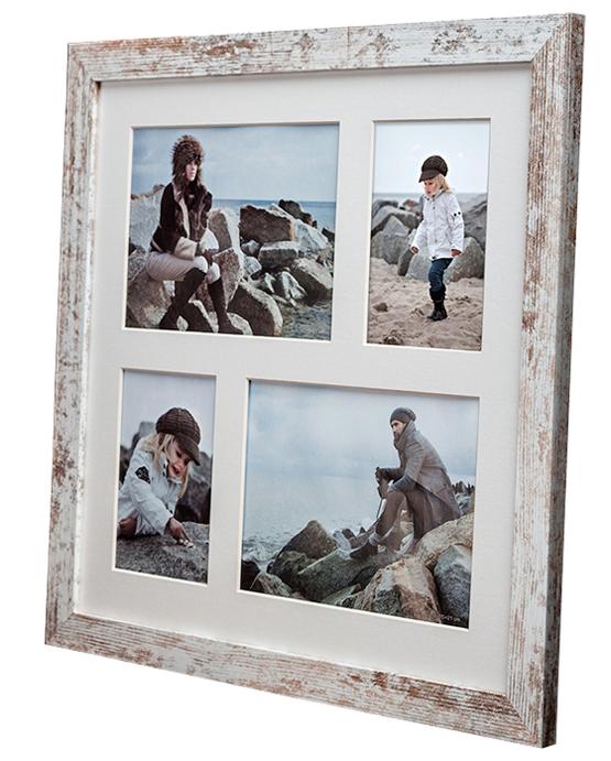 Joli cadre vintage avec un profil de cadre large à l'aspect usé en blanc et bois. Donne une dimension supplémentaire à vos images et convient parfaitement quand vous désirez une sensation vintage authentique. Cadre pêle-mêle avec de la place pour 3 images en format 10x15 cm.