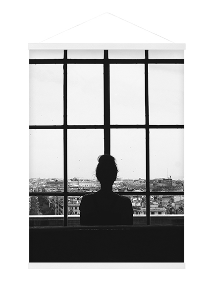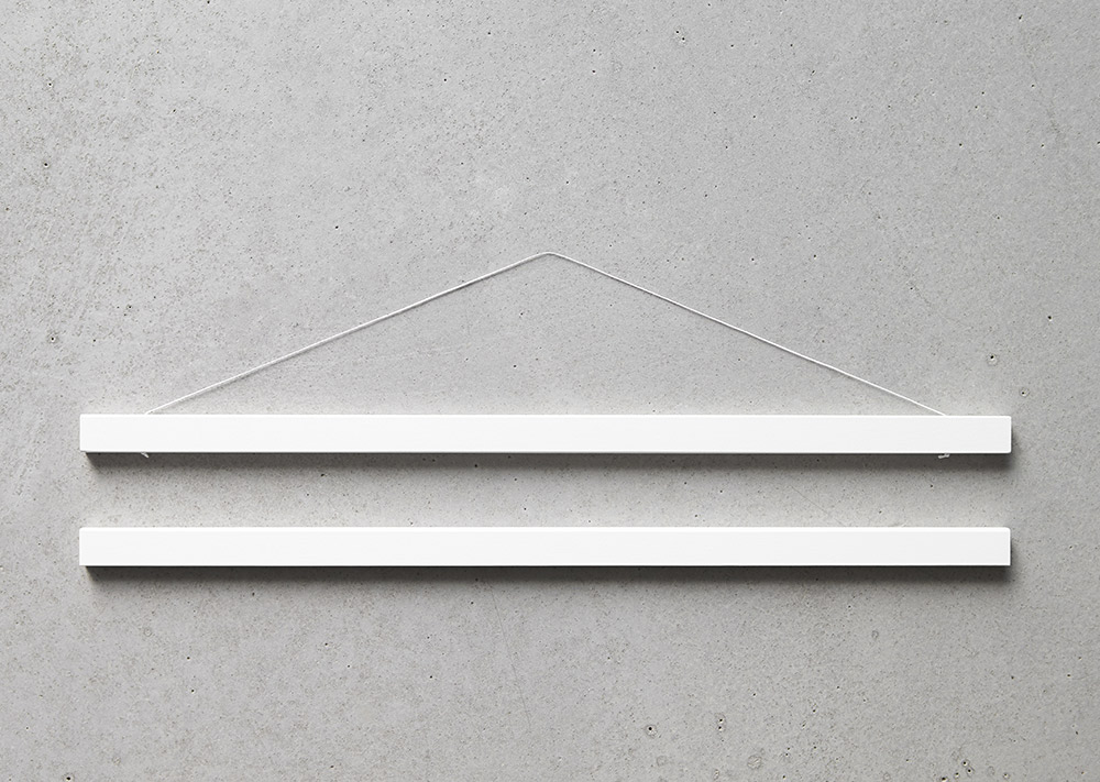 Support pour poster unique avec deux fonctions dans le même produit : s'utilise comme support pour poster classique avec une ficelle au mur ou avec la baguette placée directement contre le mur.