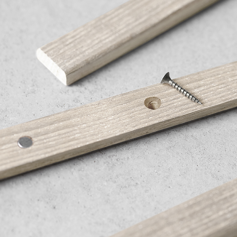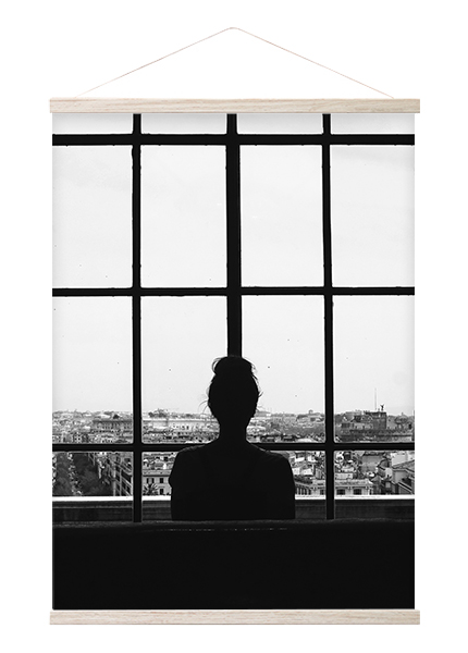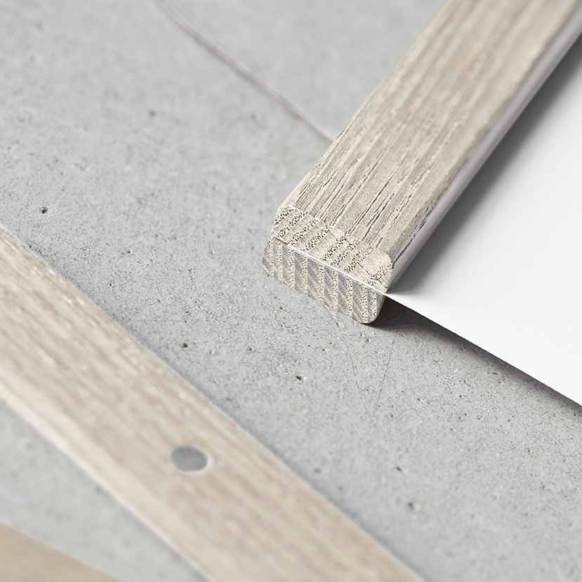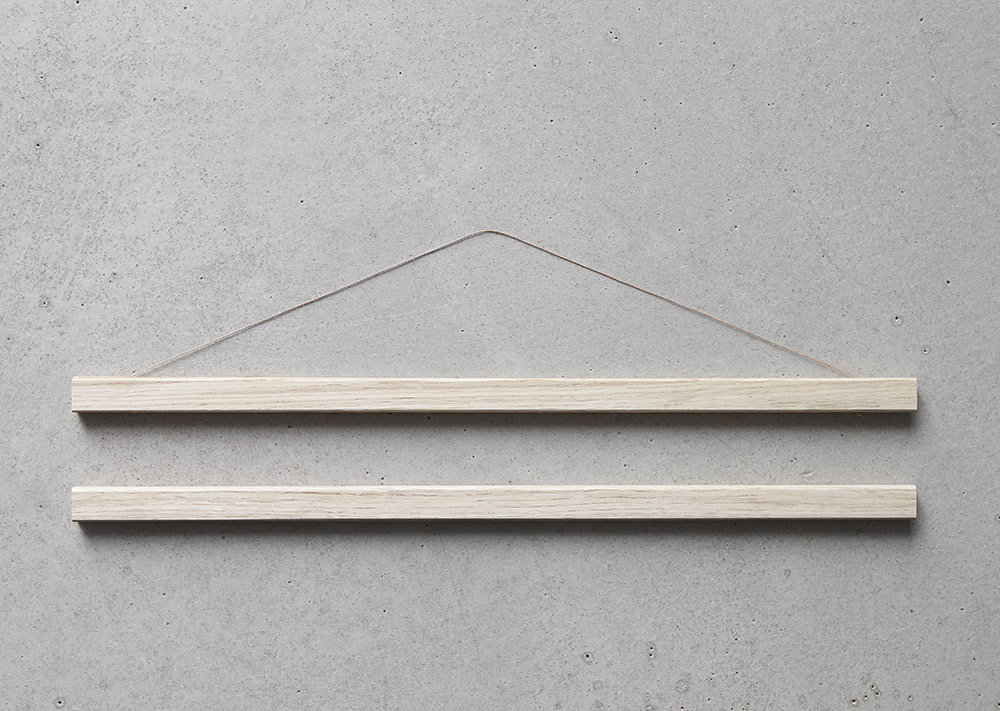 Support pour poster unique avec deux fonctions dans le même produit : s'utilise comme support pour poster classique avec une ficelle au mur ou avec la baguette placée directement contre le mur.