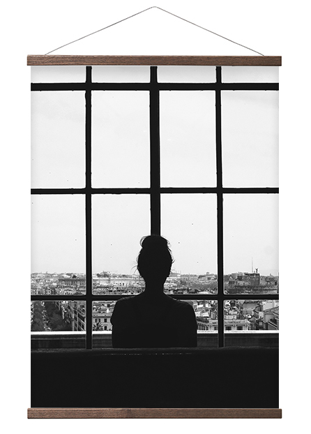 Support pour poster unique avec deux fonctions dans le même produit : s'utilise comme support pour poster classique avec une ficelle au mur ou avec la baguette placée directement contre le mur.