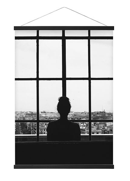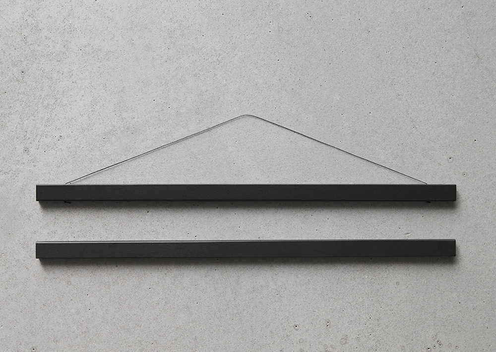 Support pour poster unique avec deux fonctions dans le même produit : s'utilise comme support pour poster classique avec une ficelle au mur ou avec la baguette placée directement contre le mur.