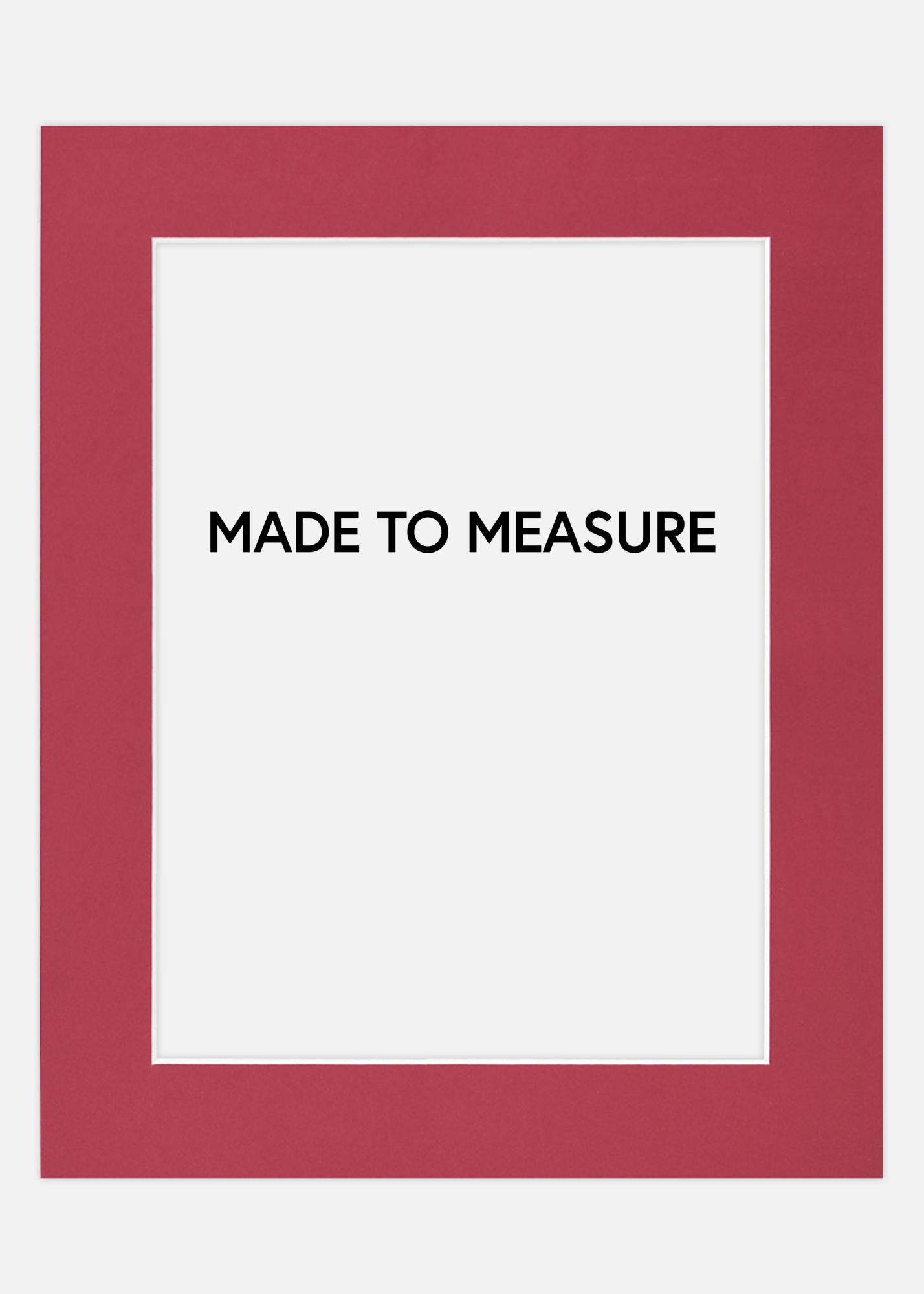 Le passe-partout rouge bordeaux (avec un centre blanc) sur mesure est entièrement réalisé selon vos souhaits ! Suivez nos instructions pour calculer en toute facilité les dimensions qui conviendront à votre photo.