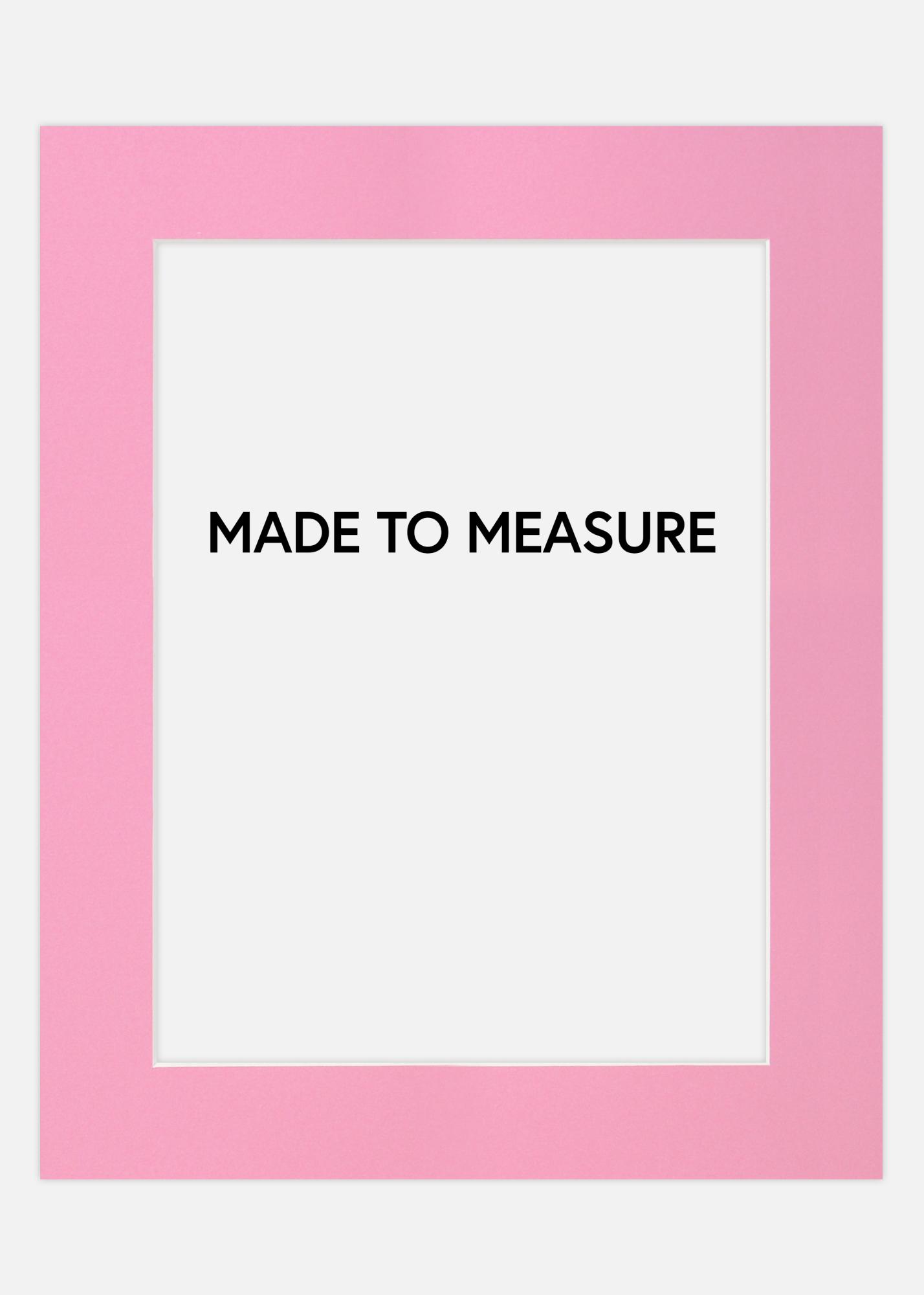 Le passe-partout rose (avec un centre blanc) sur mesure est entièrement réalisé selon vos souhaits ! Suivez nos instructions pour calculer en toute facilité les dimensions qui conviendront à votre photo.