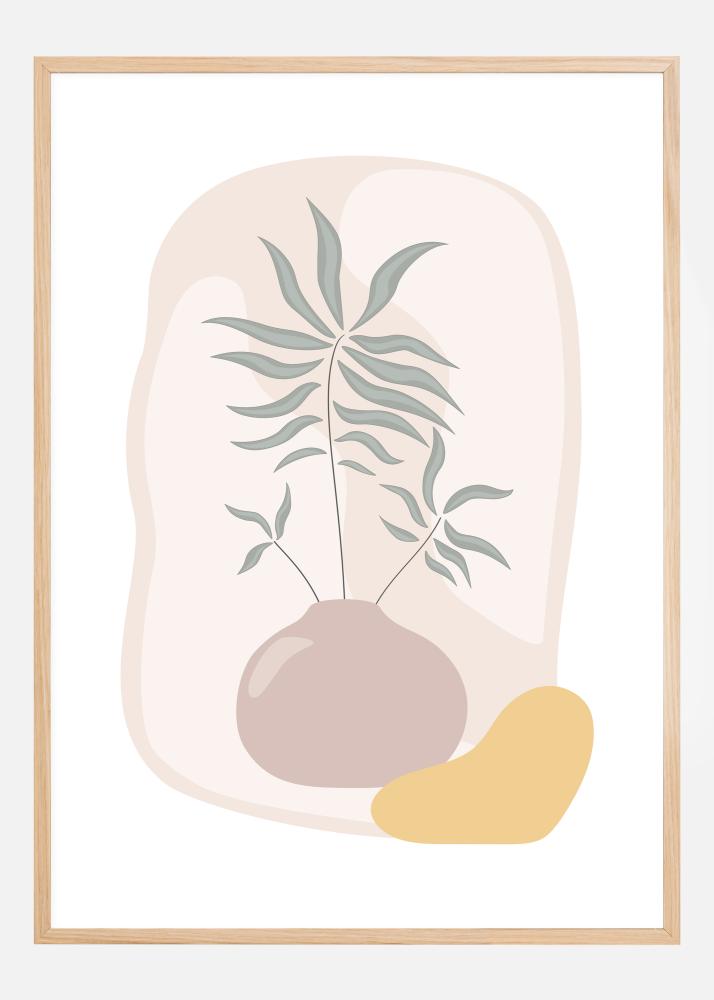 Une affiche stylisée d'un vase d'où sort une plante verte. D'autres formes et couleurs étranges remplissent l'arrière-plan pour en faire une pièce intéressante mais quelque peu abstraite. Associez-le à un dessin de style similaire pour créer votre propre mini galerie à la maison.