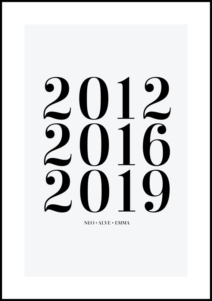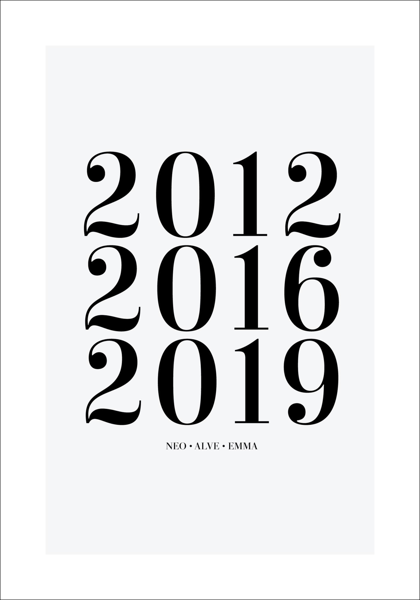Tableau de famille - 3 années de naissance et noms - Gris (21x29,7 cm (A4))