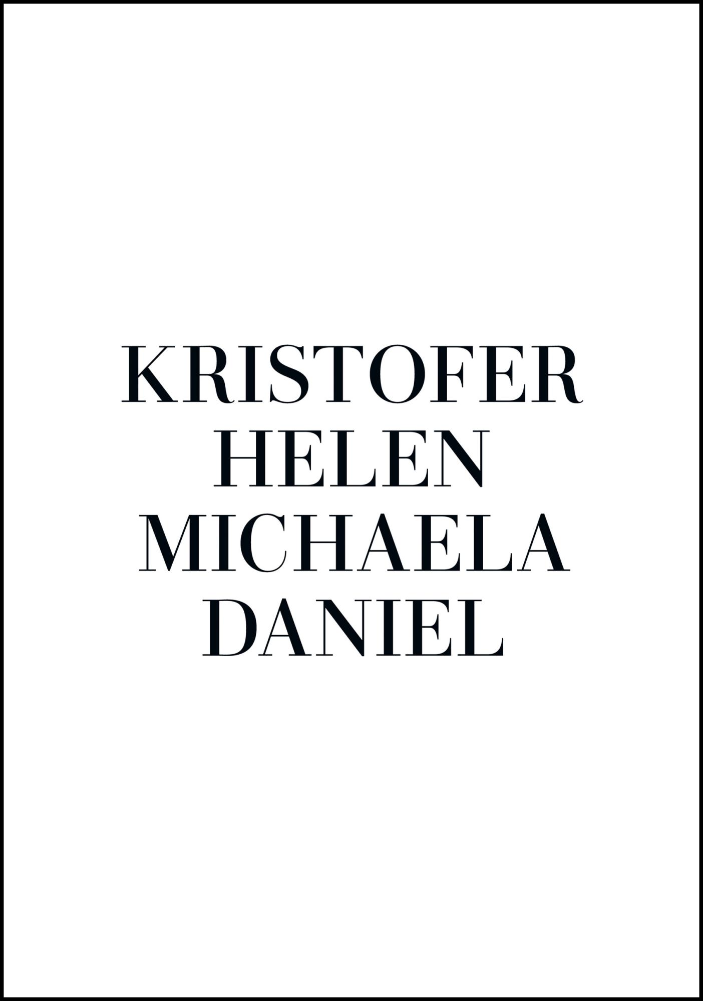 Un poster personnel est un cadeau unique et amusant, à offrir et à recevoir, et il devient un beau souvenir qui sera chéri longtemps. Vous remplissez simplement les champs ci-dessus avec les informations que vous souhaitez inclure, et nous créons votre poster personnel !